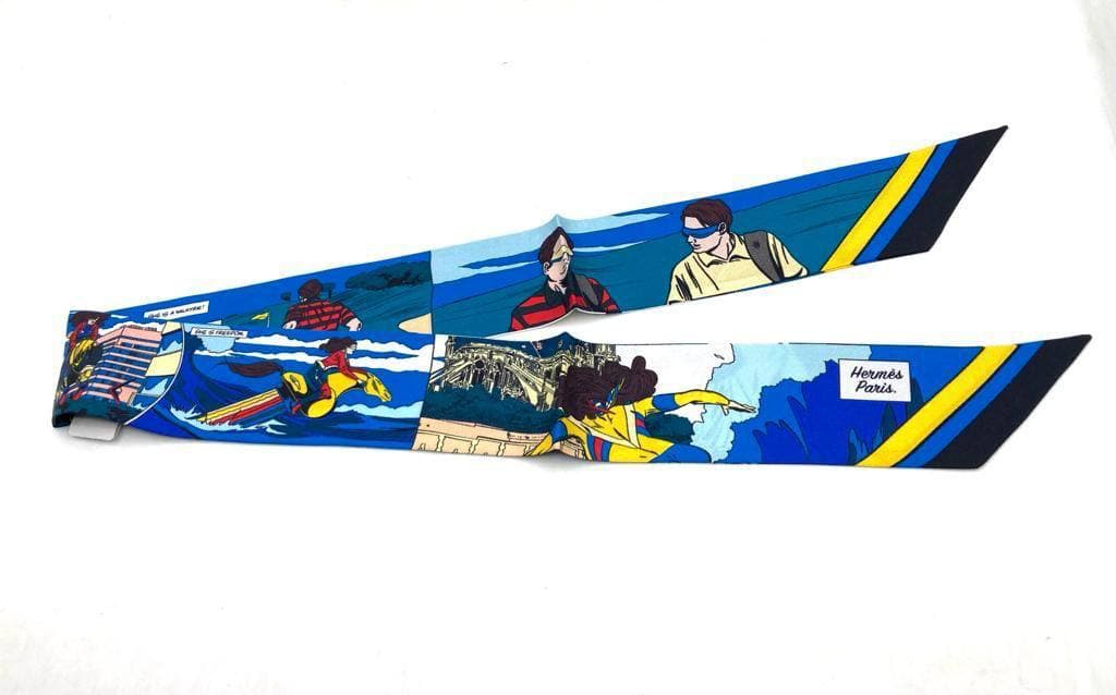 Данная шелковая лента Twilly от Hermes LUX-59767 представляет собой яркий и стильный аксессуар, который привнесет изысканность в любой образ. Ее дизайн выполнен в яркой комиксной стилистике с элементами городских пейзажей и динамичных сцен, что подчеркивает смелость и индивидуальность бренда.
