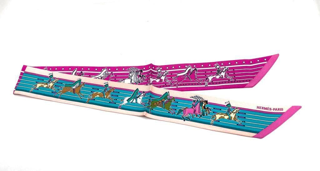 Лента Twilly Hermes LUX-59786 представляет собой элегантный аксессуар, выполненный в классическом стиле бренда Hermes. На ленте изображен динамичный принт с бегущими лошадьми и всадниками, выполненный в ярких и насыщенных цветах. Этот аксессуар идеально подходит для придания изысканности любому образу.