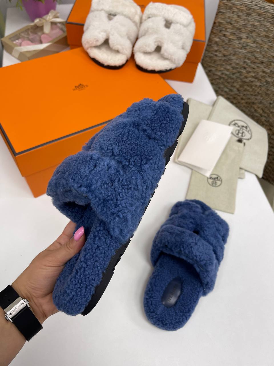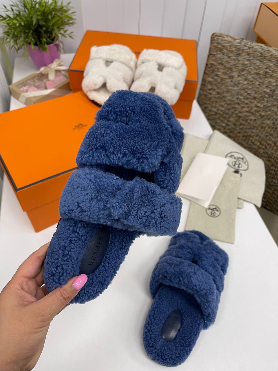 Меховые тапочки Hermes LUX-86100 – это воплощение роскоши и комфорта от известного бренда. Тапочки выполнены в современном стиле, имеют насыщенный синий цвет и мягкую, пушистую текстуру. Идеально подойдут для создания уютного образа дома.