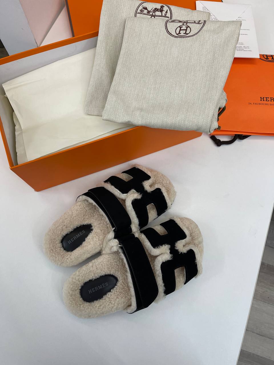 Меховые тапочки Hermes LUX-95381