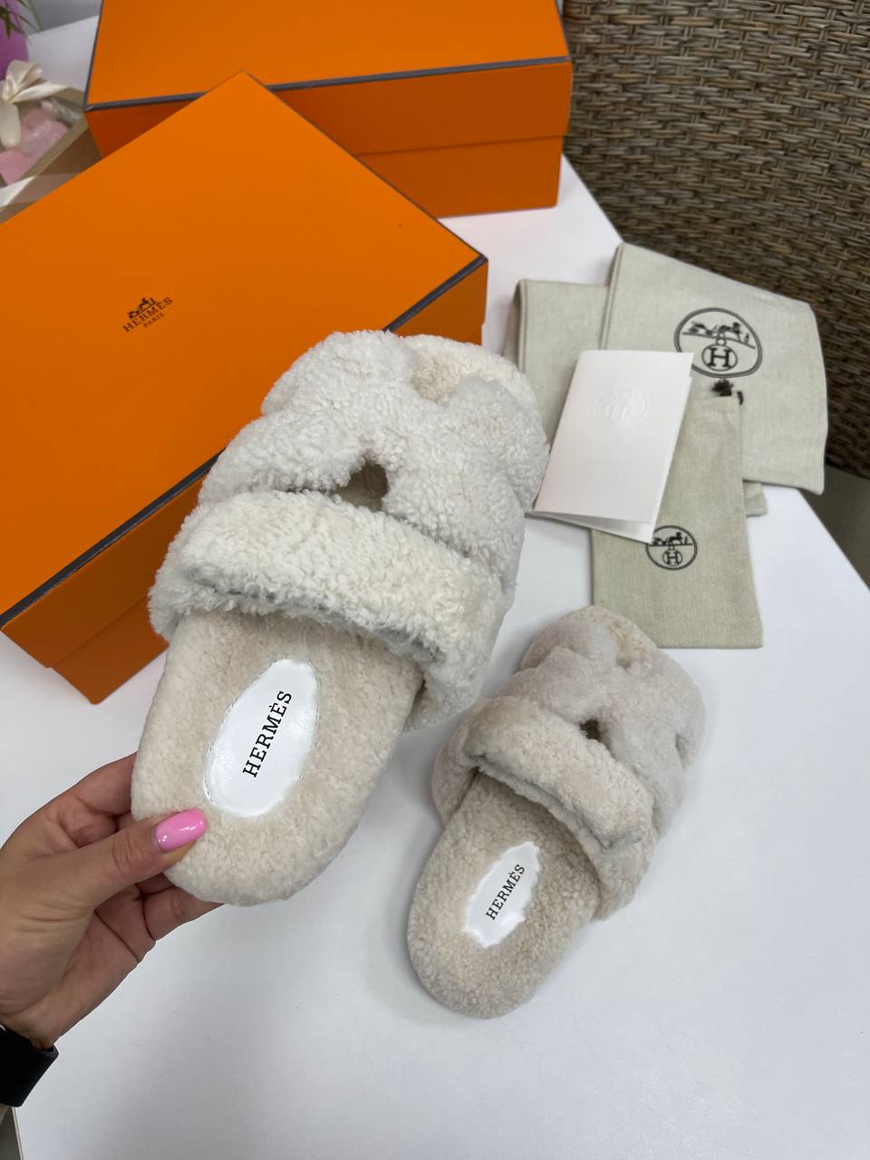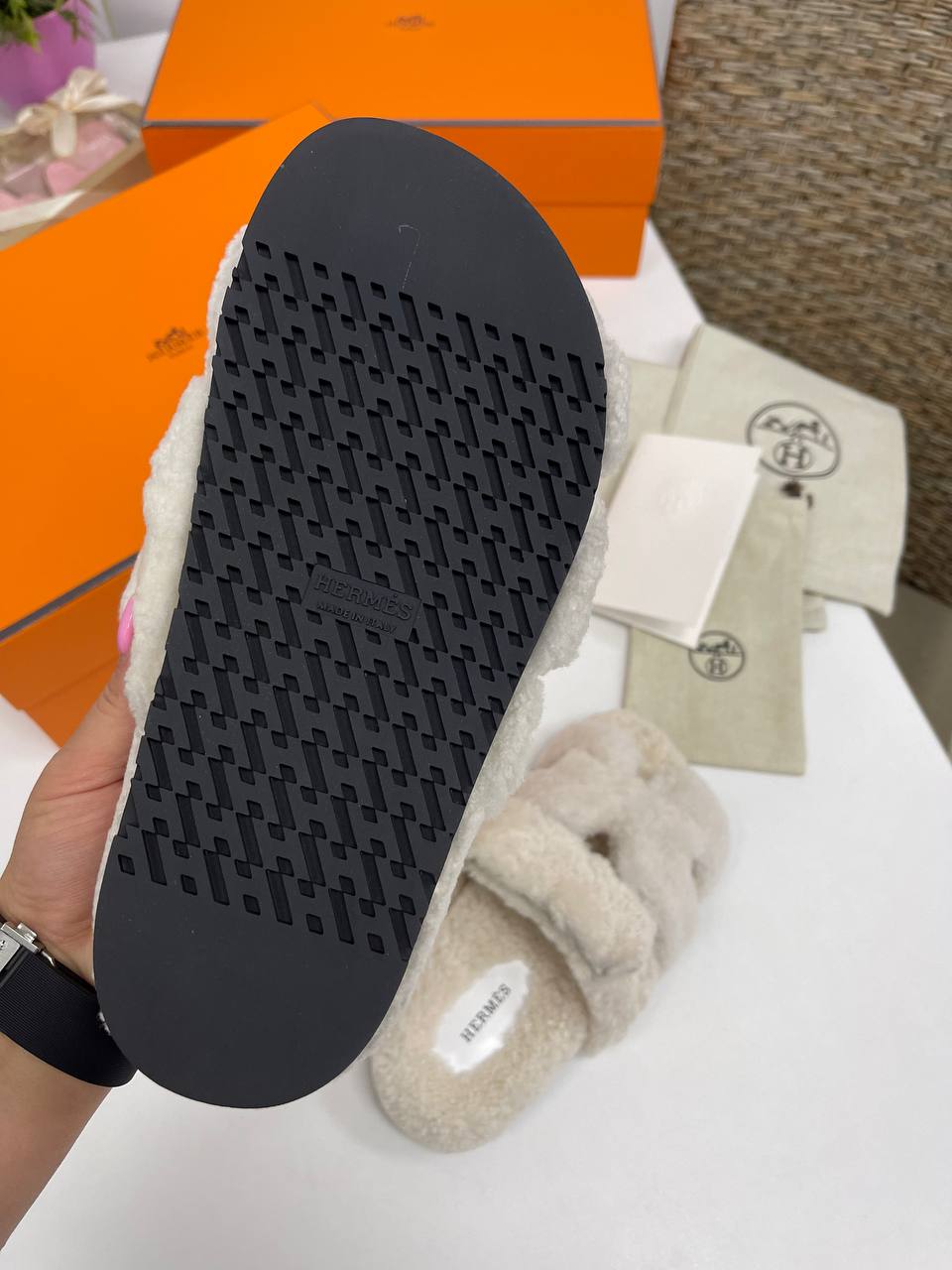 Меховые тапочки Hermes LUX-86101