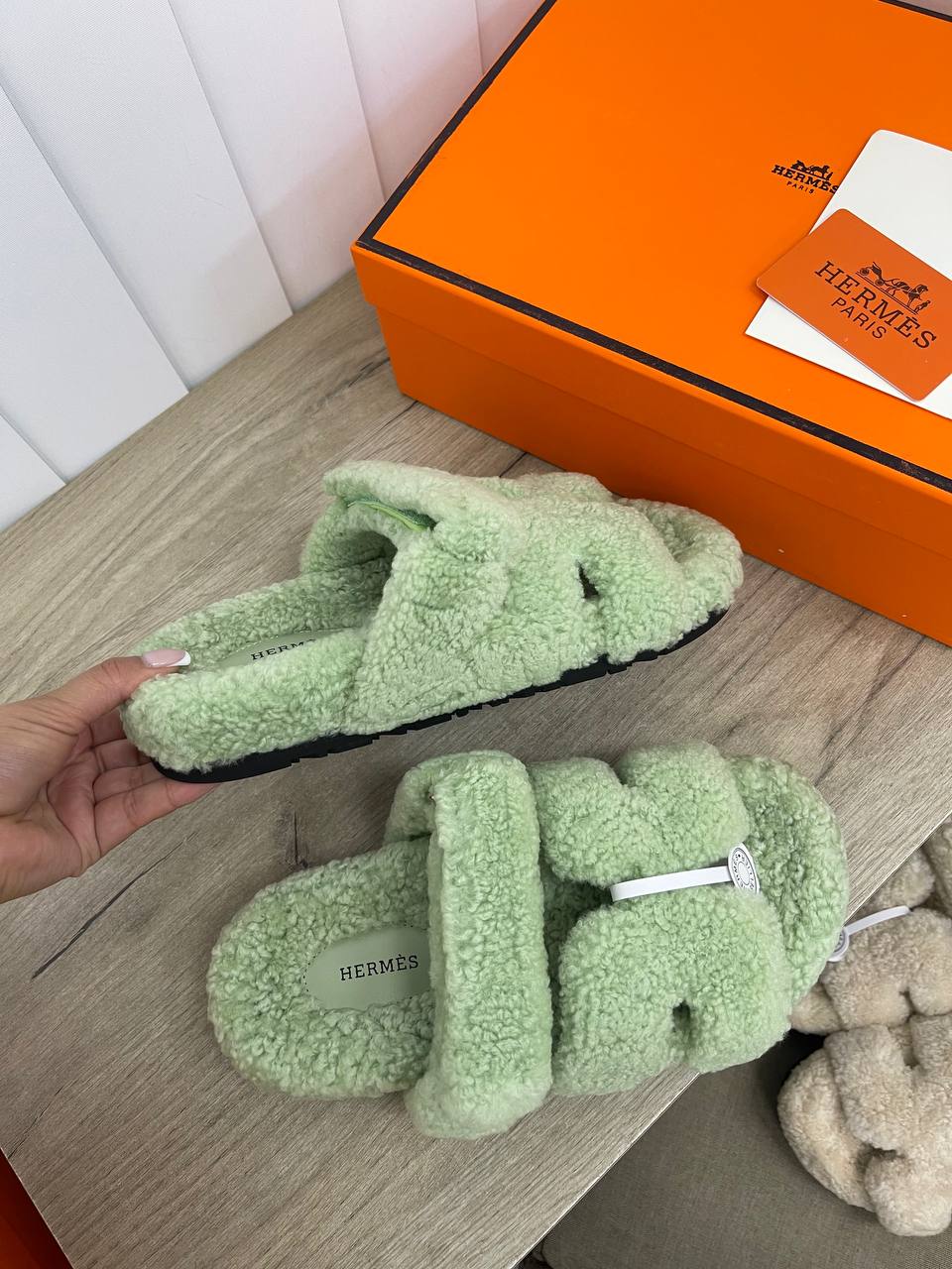 Меховые тапочки Hermes LUX-93252