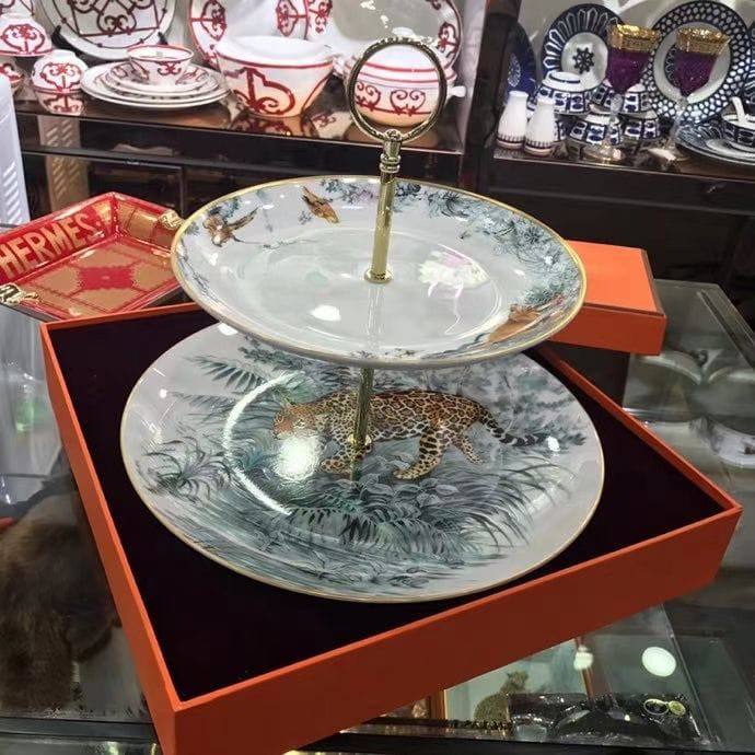 Менажница 2-х ярусная Hermes LUX-94698 выполнена в изысканном стиле и представляет собой элегантное решение для сервировки стола. Двухъярусная конструкция позволяет эффектно представить закуски, десерты или фрукты. Менажница украшена уникальным дизайном с изображением леопарда и птиц, что придает ей неповторимый шарм.