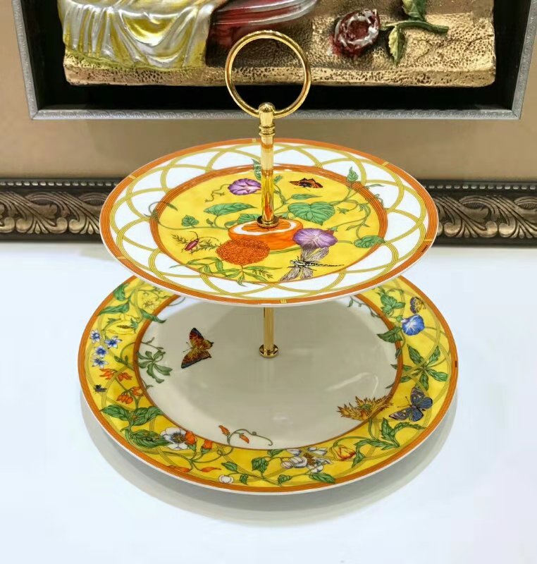 Минажница Hermes LUX-22142 – это изысканное двухъярусное блюдо, сочетающее в себе функциональность и утонченный дизайн. Изготовленная в элегантном стиле, она украшена ярким цветочным орнаментом и изображениями насекомых, напоминающими летний луг. Это изделие бренда Hermes идеально подходит для сервировки закусок, фруктов или сладостей, добавляя праздничности любому столу.