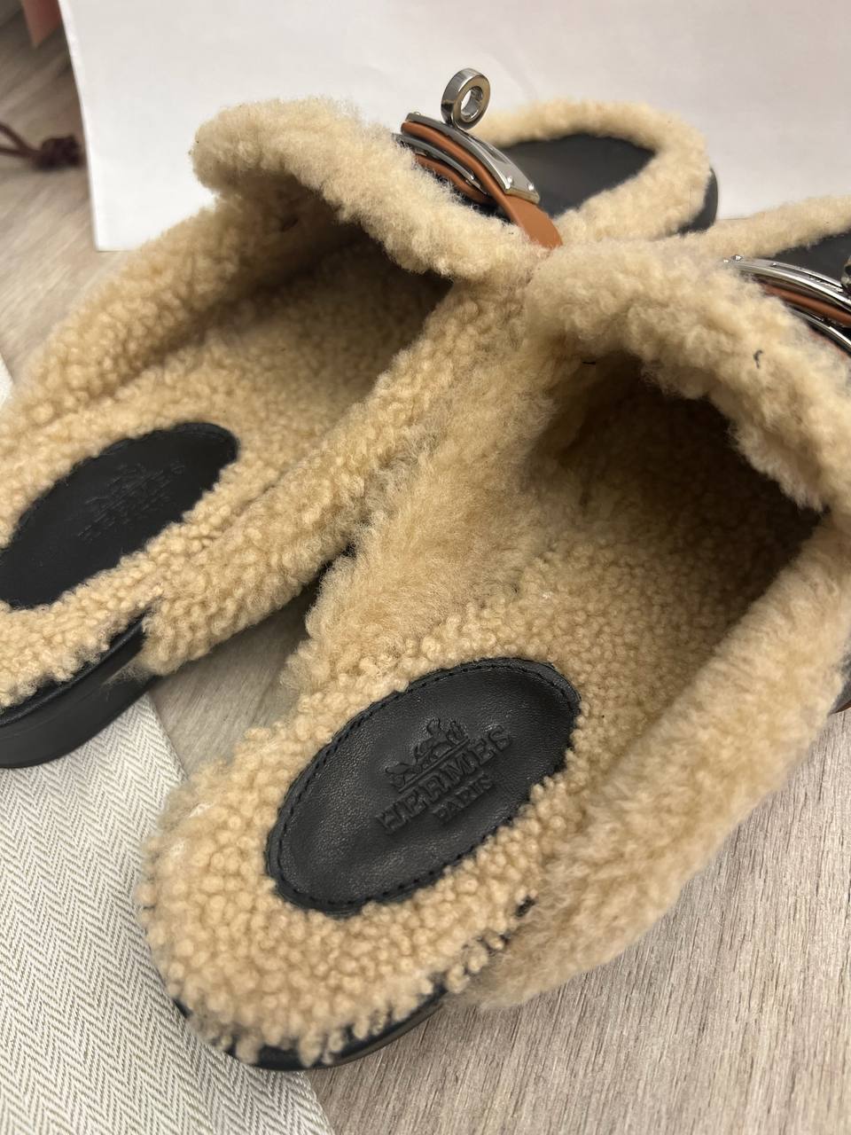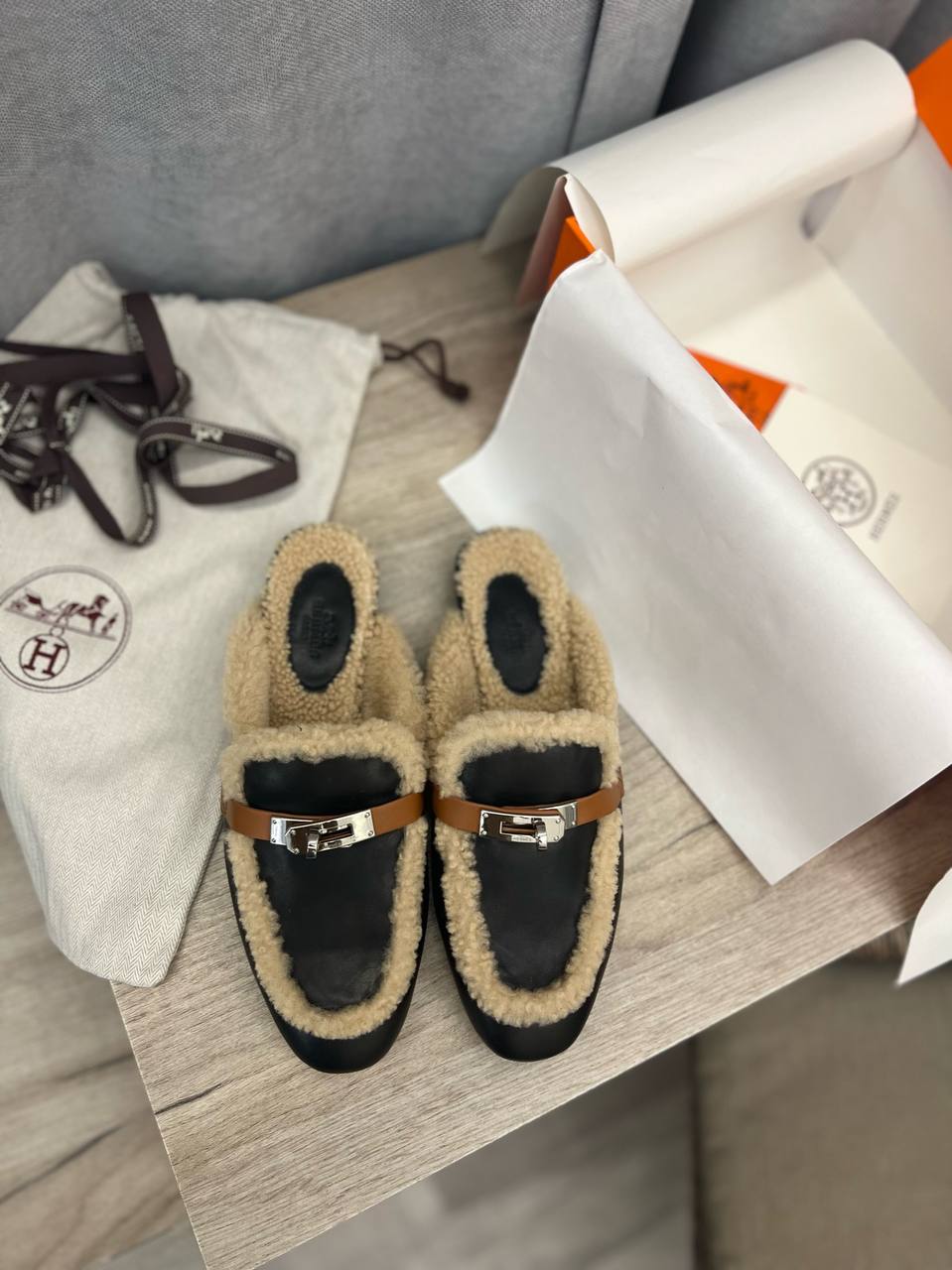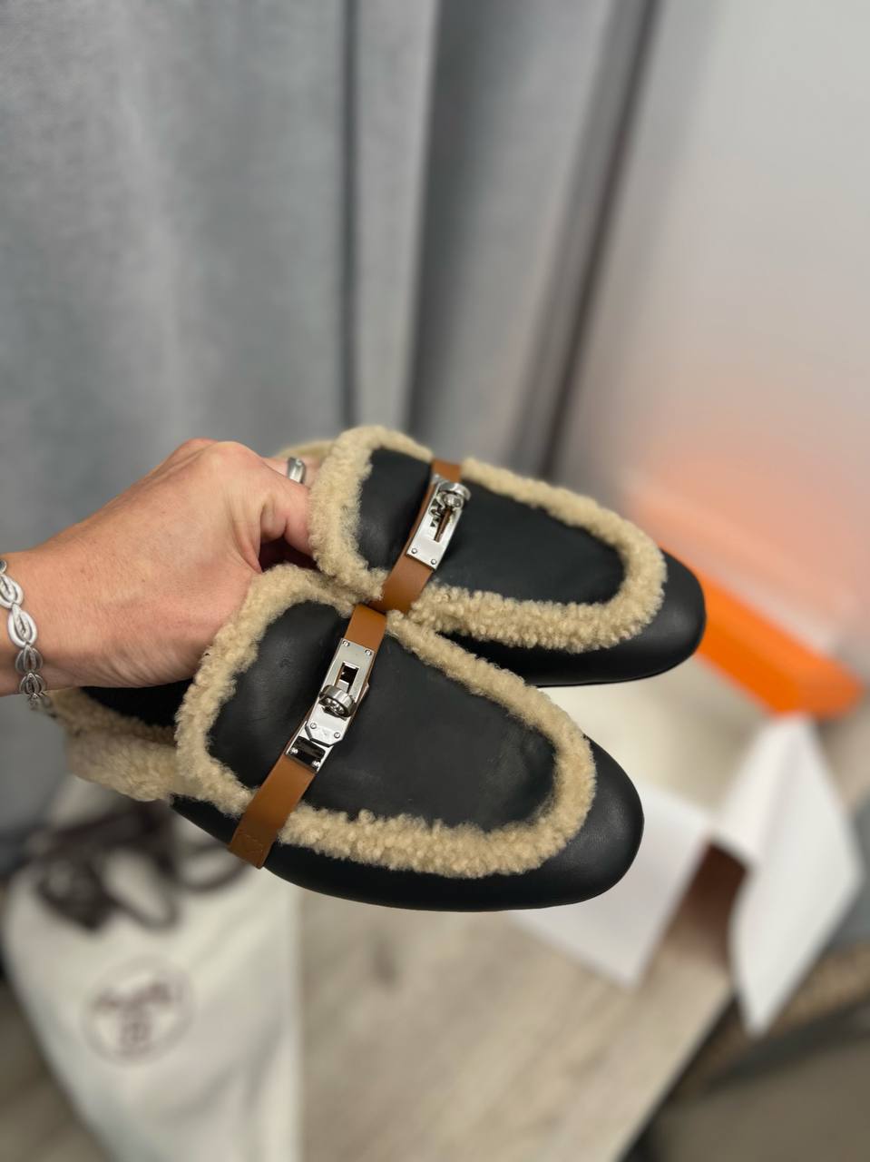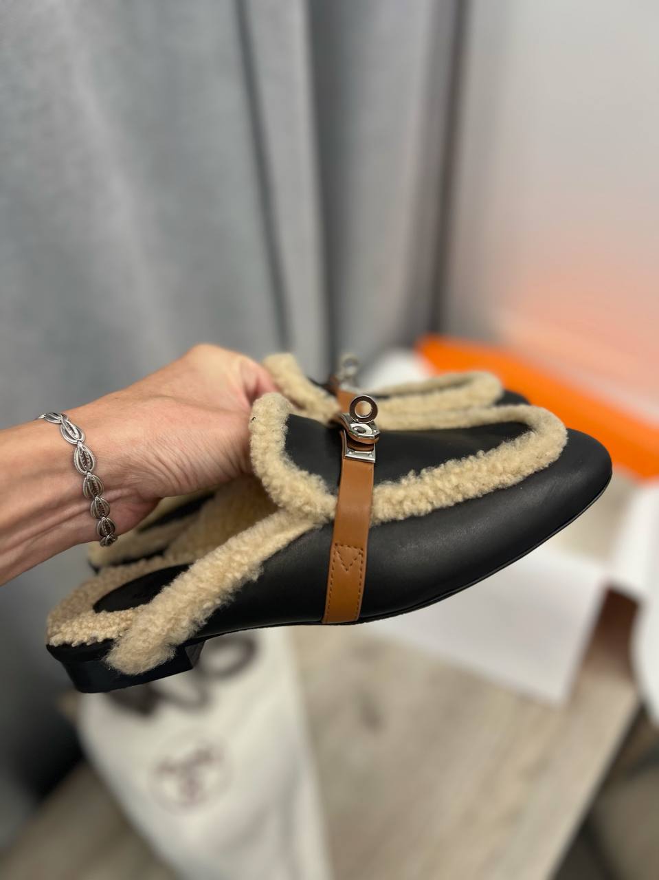 Мюли Hermes LUX-97350 представляют собой стильную и комфортную обувь, сочетающую в себе элегантность и практичность. Эти мюли выполнены в черном цвете с деталями в виде теплого подшерстка бежевого цвета, создавая эффектный контраст. Идеально подходят для повседневной носки, добавляя изысканности любому образу.