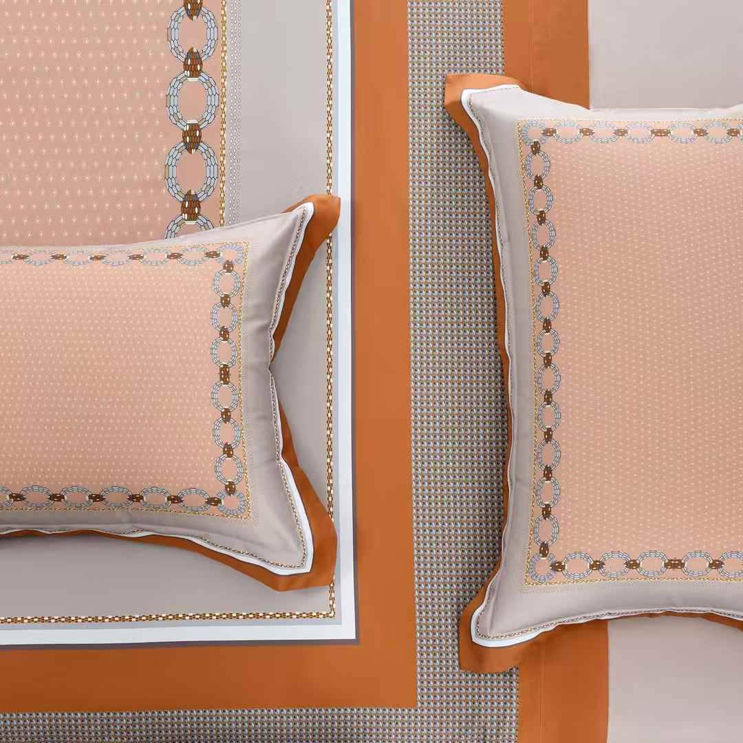 На изображении представлен изысканный набор постельного белья Hermes LUX-122902. Комплект выполнен в спокойных тонах с акцентными деталями, придающими ему элегантность и изысканность.