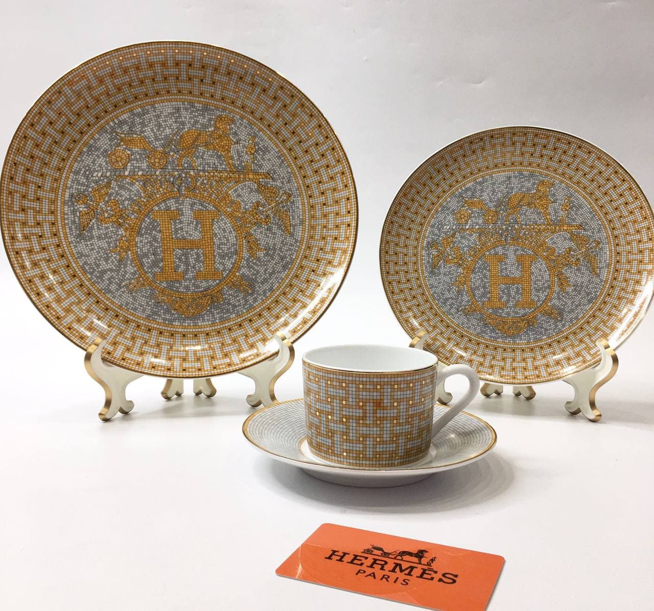 Набор Hermes LUX-58062 представляет собой изысканный комплект посуды, выполненный в классическом стиле бренда Hermes. Комплект включает в себя тарелки и чашку с блюдцем, украшенные узнаваемым логотипом бренда и мозаичным узором. Этот набор станет элегантным дополнением к сервировке стола и подчеркнет ваш утонченный вкус.