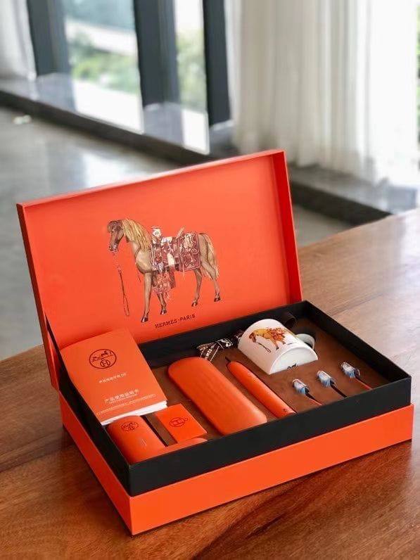 Набор для ухода за ротовой полостью Hermes LUX-68990 представляет собой элегантное решение для поддержания гигиены. Вдохновленный эстетикой бренда Hermes, этот набор сочетает в себе роскошь и практичность, делая ежедневные процедуры ухода приятными и стильными. Яркая оранжевая упаковка с фирменной символикой подчеркивает премиальный характер содержимого, а продуманная комплектация обеспечивает комплексный уход.
