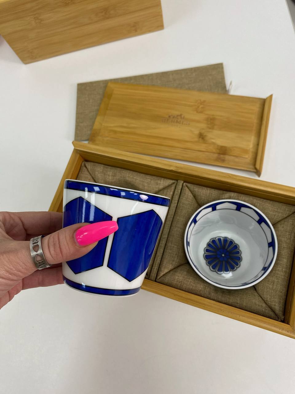 Набор из 2 стаканов в деревяннои коробке Hermes LUX-84682