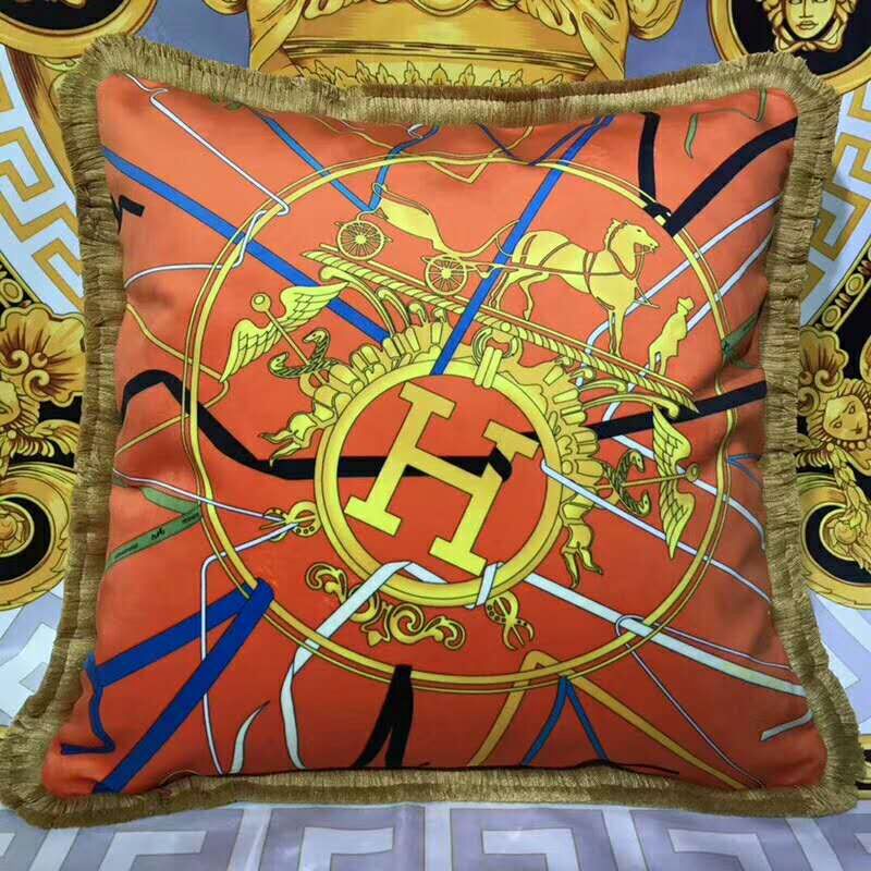 Наволочка Hermes LUX-19139 представляет собой роскошный элемент декора, выполненный в изысканном стиле, характерном для бренда Hermes. Ее яркий оранжевый фон, украшенный узнаваемым принтом с изображением экипажа и монограммы "H" в золотистом обрамлении, придает изделию неповторимый шарм. Декоративная бахрома по периметру добавляет элегантности и завершает образ.