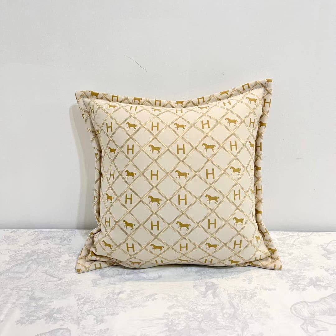 Наволочка 50х50см Hermes LUX-82909 - это изысканный аксессуар для вашего дома. Наволочка выполнена в классическом стиле с узнаваемым логотипом и контурными изображениями лошадей, представляя собой элегантный предмет декора в бежево-золотых тонах. Она прекрасно дополнит интерьер спальни или гостиной, создавая атмосферу уюта и роскоши.
