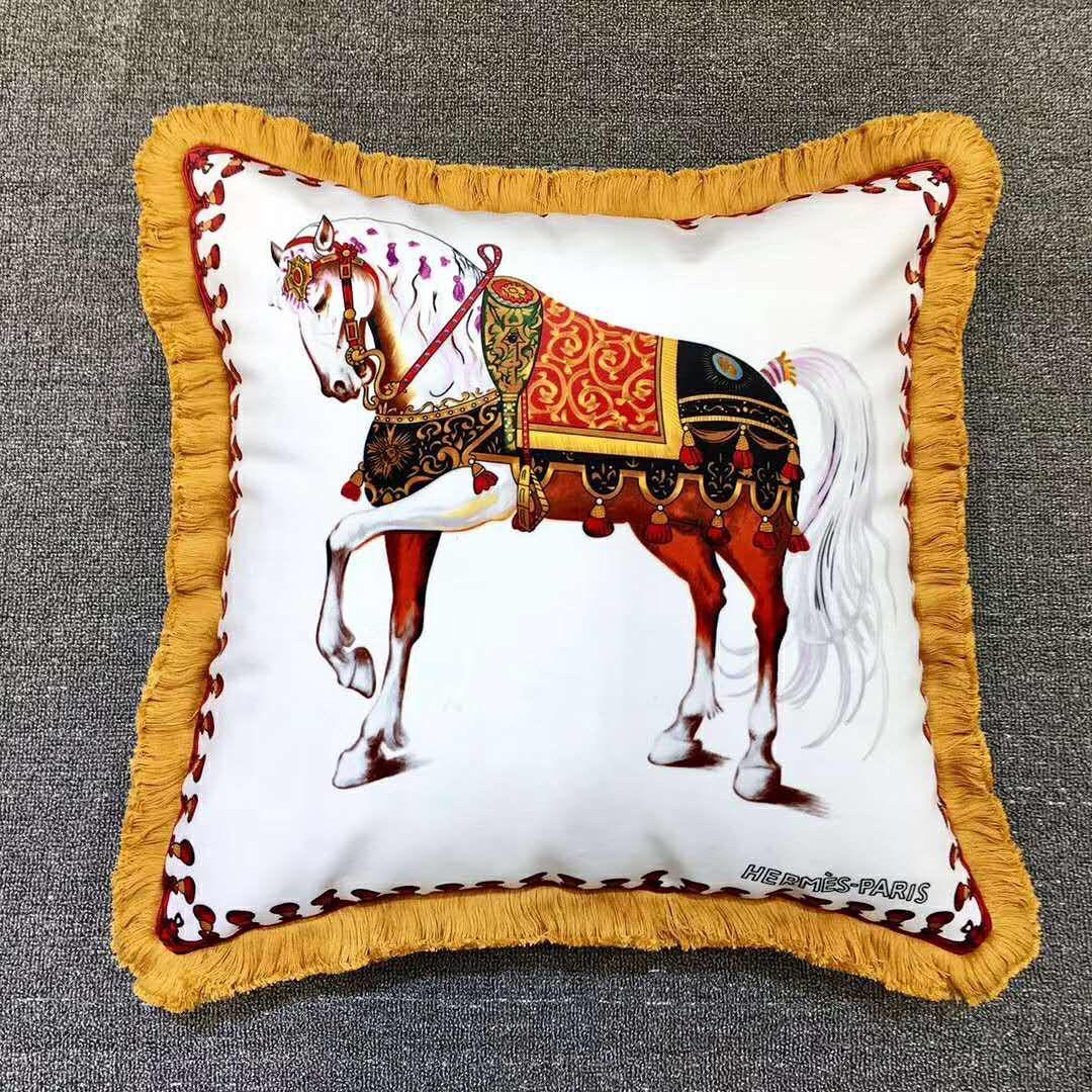 Эта элегантная наволочка для декоративной подушки Hermes LUX-34610, выполненная в изысканном стиле, станет роскошным дополнением к вашему интерьеру. Ее дизайн украшен величественным изображением скакуна, одетого в богато украшенную упряжь, что придает изделию особую утонченность и шарм.