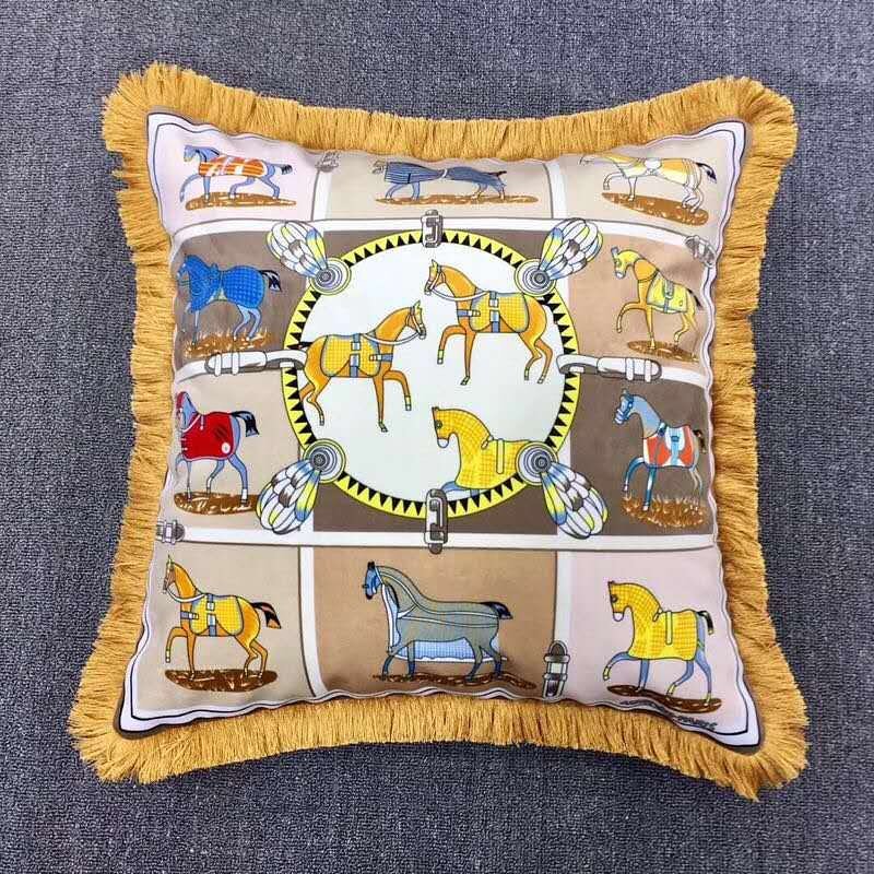 Наволочка для декоративной подушки Hermes LUX-36267 представляет собой элегантный аксессуар, выполненный в стиле, вдохновленном классическими мотивами бренда Hermes. Эта наволочка с изображением стилизованных лошадей, заключенных в рамки, напоминающие шарфы бренда, станет роскошным дополнением к интерьеру. Дизайн отличается изысканностью и вниманием к деталям, что характерно для продукции Hermes.
