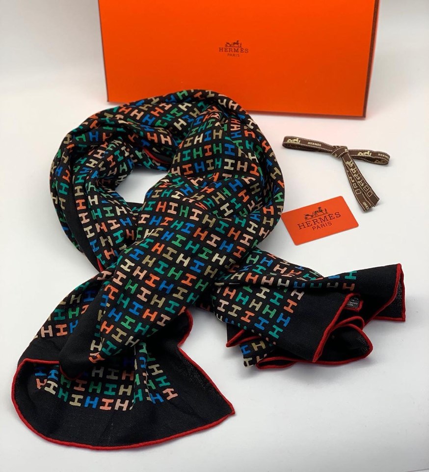 Палантин Hermes LUX-18695 представляет собой стильный и элегантный аксессуар, выполненный в узнаваемом стиле бренда. Этот палантин с ярким принтом в виде букв "H" на черном фоне станет эффектным дополнением к вашему образу. Его универсальный дизайн позволяет сочетать его с различными стилями одежды, от повседневного до вечернего.