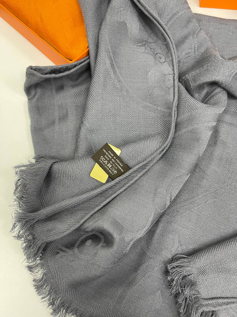 Палантин Hermes Palantin 26, артикул LUX-83709 — это элегантный аксессуар для стильных образов. Палантин выполнен в сером цвете, что делает его универсальным для сочетания с различными нарядами. Мягкая текстура и дизайн с бахромой придают ему изысканный вид.