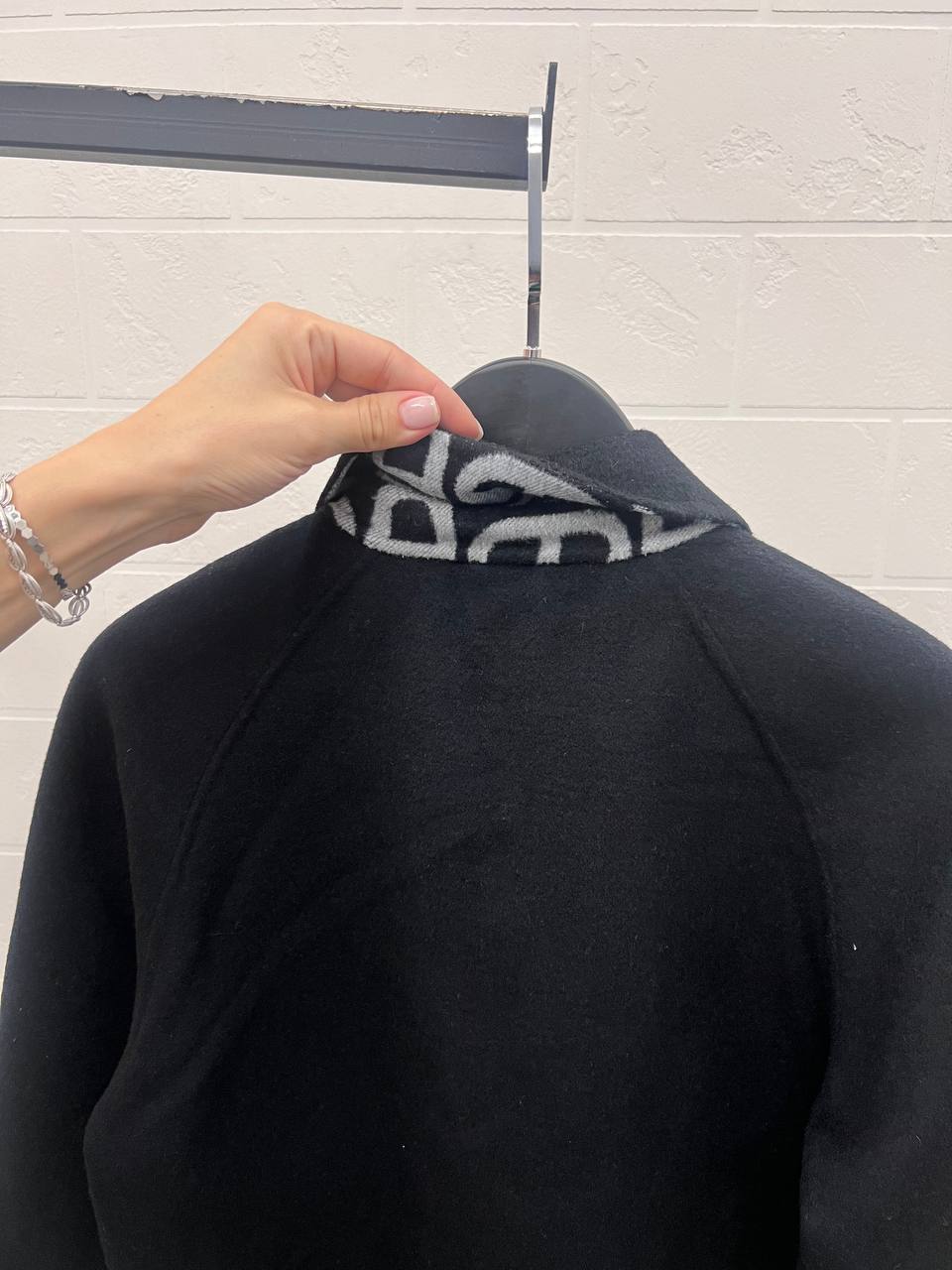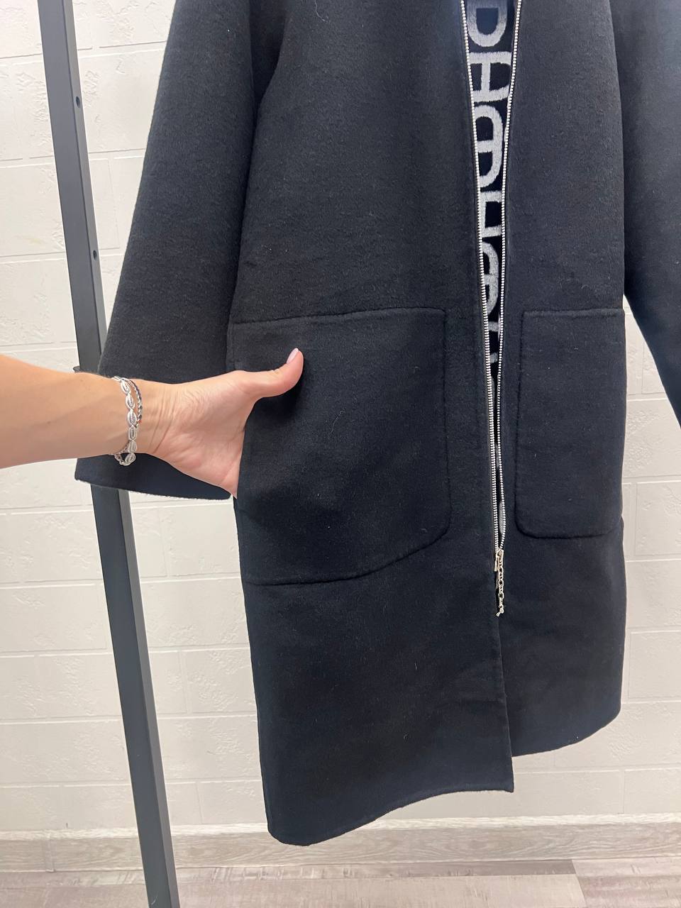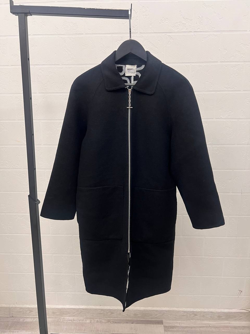 Пальто Hermes LUX-109415 — это элегантное пальто черного цвета, которое сочетает в себе классический стиль и современный дизайн. Пальто имеет прямой крой, длинные рукава и застежку-молнию. Идеально подходит для повседневной носки, а также для создания более формальных образов.