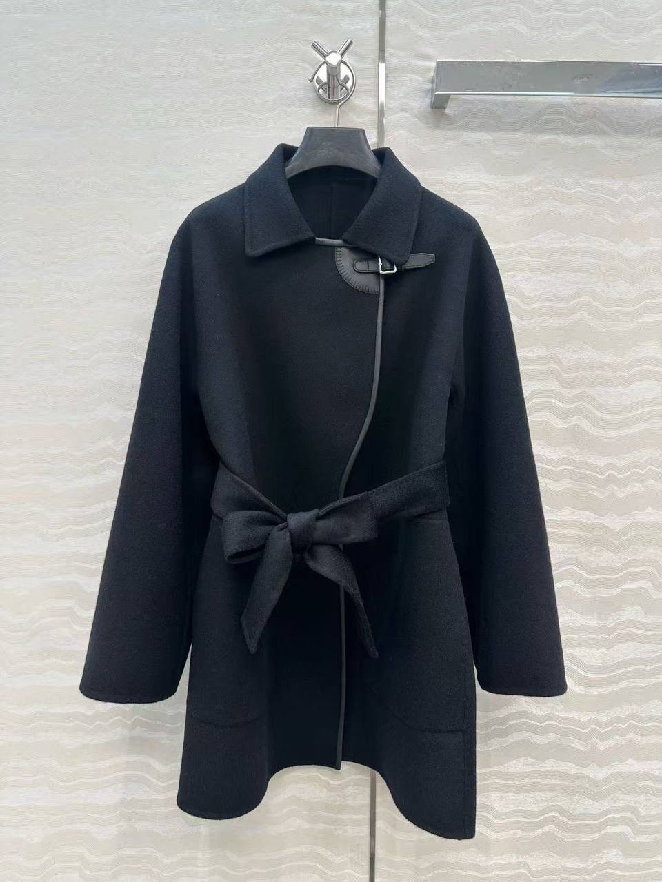 Элегантное чёрное пальто Hermes – воплощение изысканности и стиля. Лаконичный крой и качественные материалы делают его универсальным выбором для создания неповторимого образа.