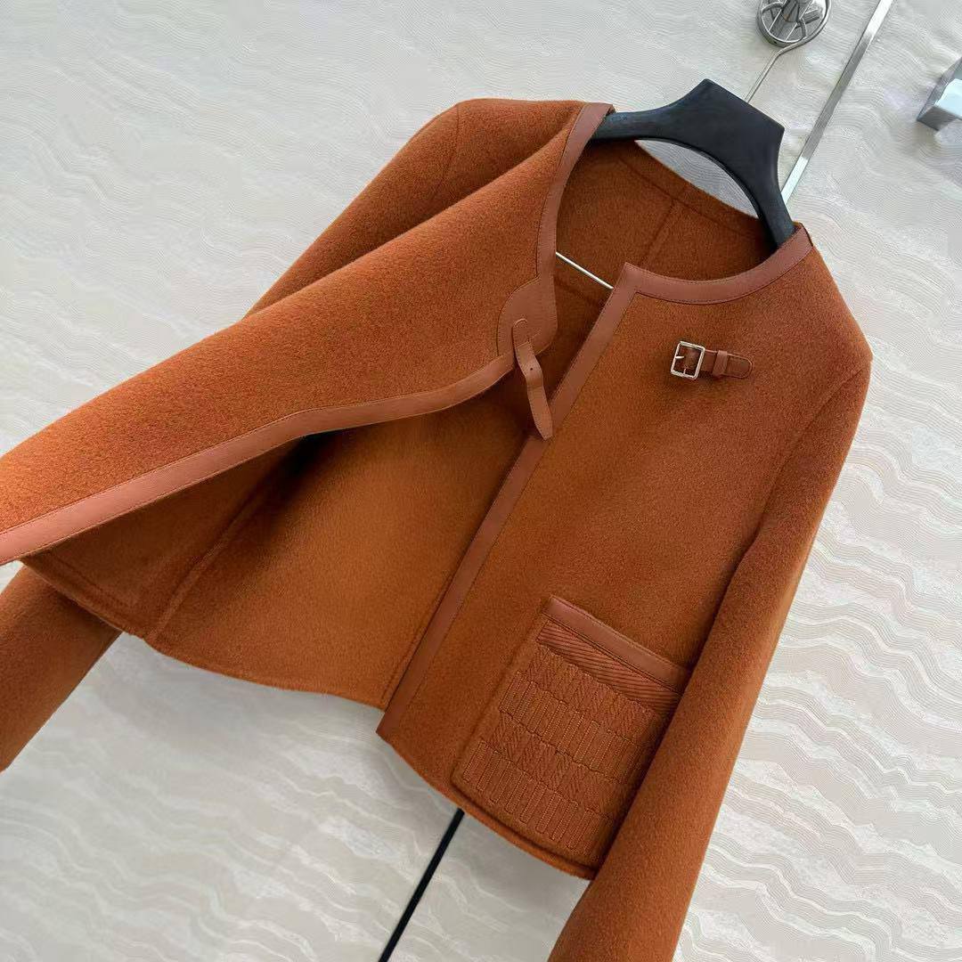 Пальто Hermes LUX-125481 - это элегантный предмет гардероба, сочетающий в себе классический стиль и современные детали. Короткое пальто выполнено в теплом коричневом цвете и имеет асимметричную застежку с декоративной пряжкой.