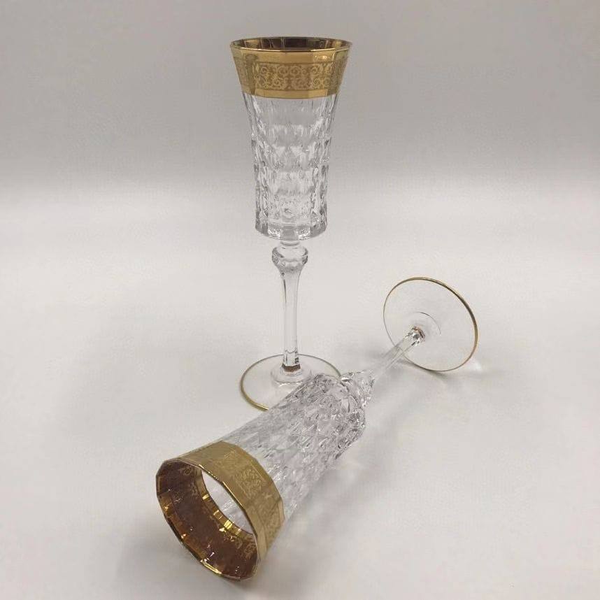 Пара фужеров Hermes LUX-100041 - изысканное изделие для ценителей элегантности. Фужеры выполнены в классическом стиле, сочетают прозрачное стекло с золотистой отделкой, создавая роскошный вид. Идеальны для подачи шампанского, добавляя изысканности праздничному застолью.