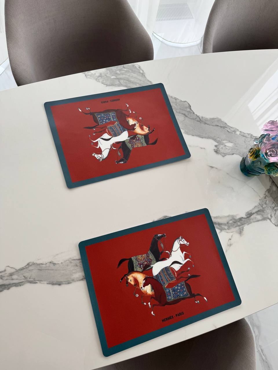 Пара салфеток Hermes LUX-119064 представляют собой стильный предмет сервировки стола от известного бренда. Салфетки прямоугольной формы, выполнены в красном цвете с темно-зелеными краями и изображением лошадей. Они предназначены для защиты поверхности стола и создания уюта.