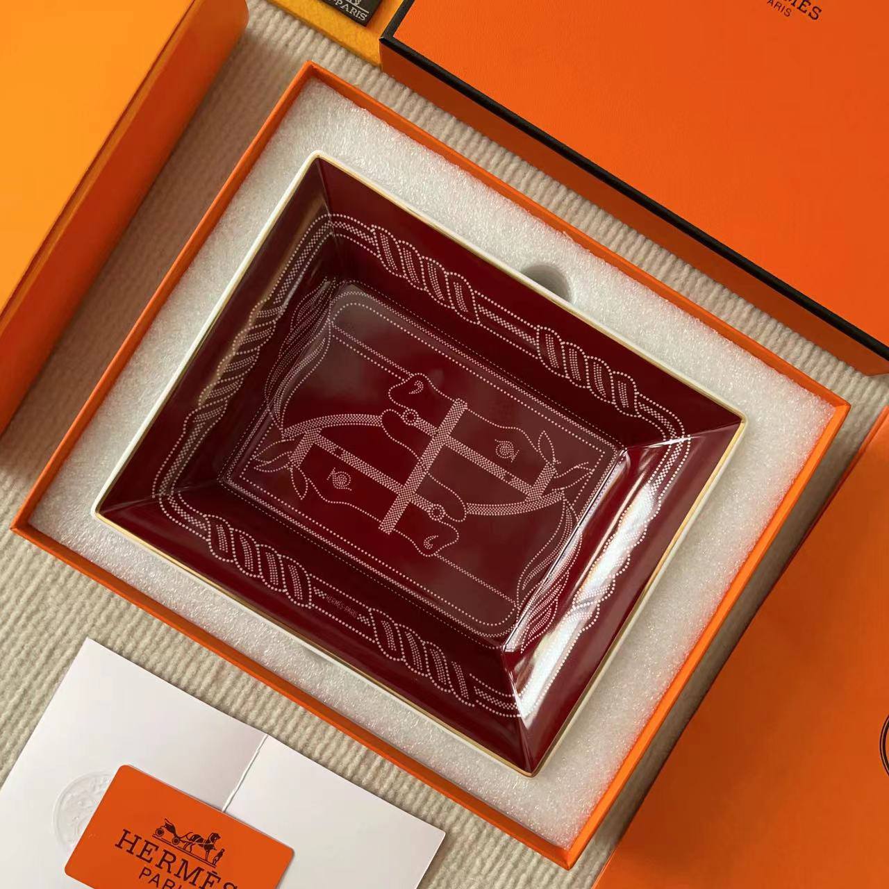 Пепельница Hermes LUX-110014 — это изысканный аксессуар от знаменитого бренда. Пепельница выполнена в бордовом цвете с элегантным узором. Этот предмет предназначен для использования в качестве пепельницы, но также может служить стильным декоративным элементом интерьера.
