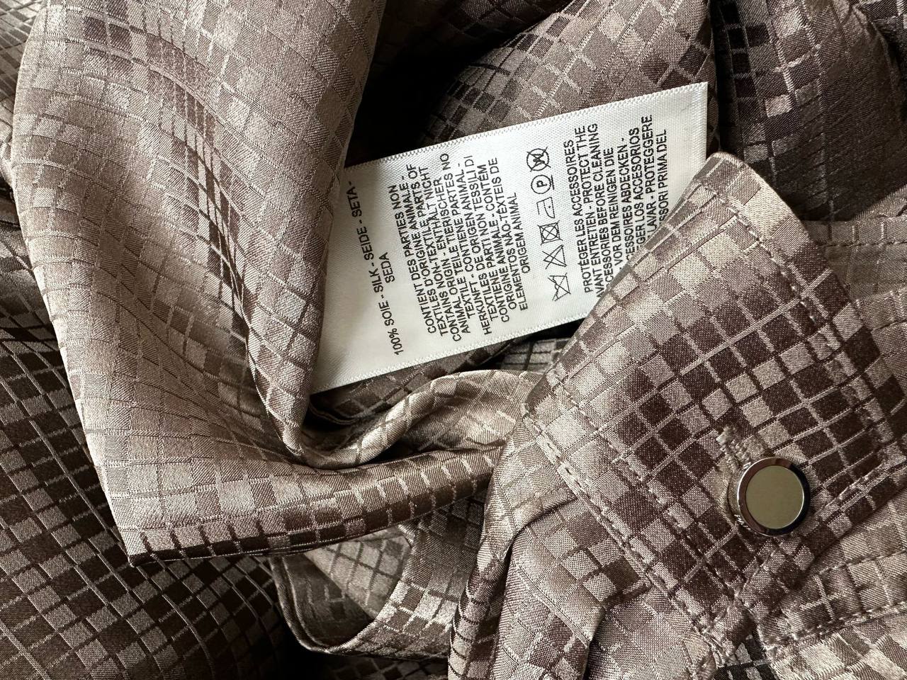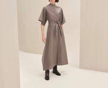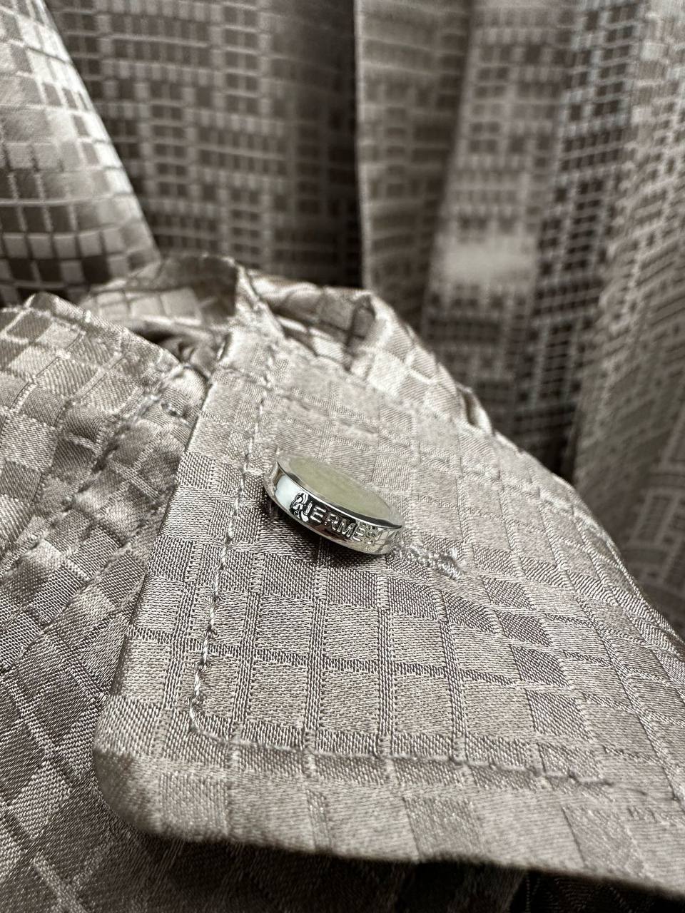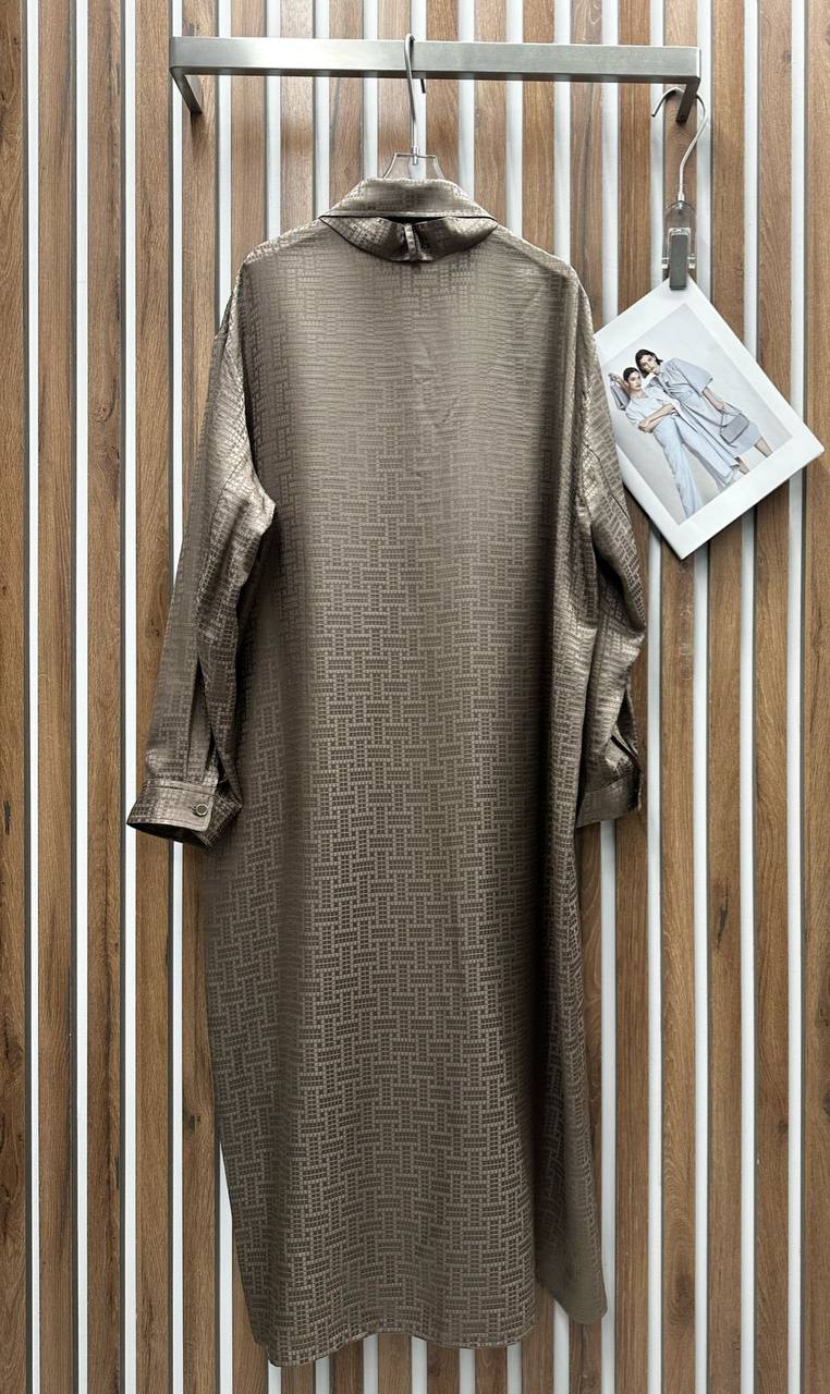 Платье Hermes LUX-117017 — воплощение элегантности и изысканности. Модель выполнена в стиле рубашки с длинными рукавами и галстуком-бантом, который придает образу женственность. Платье имеет насыщенный коричневый оттенок с геометрическим узором. Прекрасный выбор для создания стильного и запоминающегося образа.