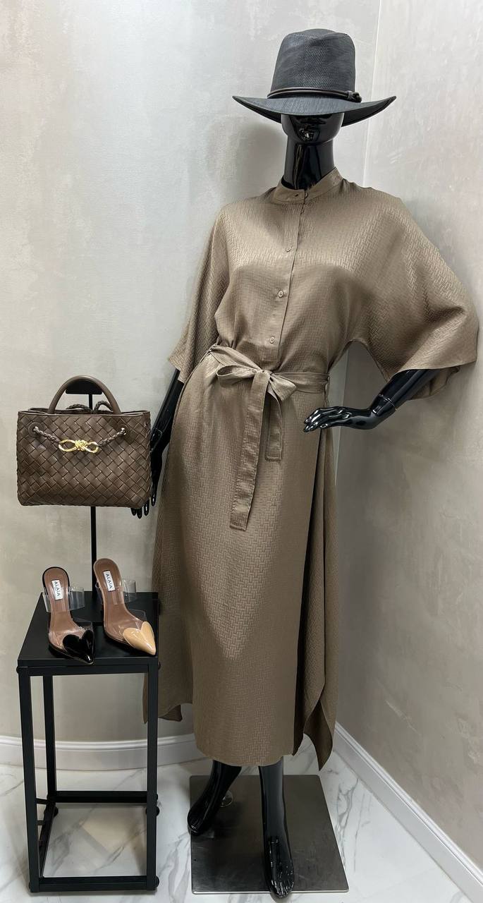 Платье Hermes LUX-117527 – это элегантное платье-рубашка с поясом, выполненное в нейтральном оттенке. Платье имеет прямой силуэт, рукава ? и застегивается на пуговицы. Оно подойдет как для повседневной носки, так и для создания более формальных образов.