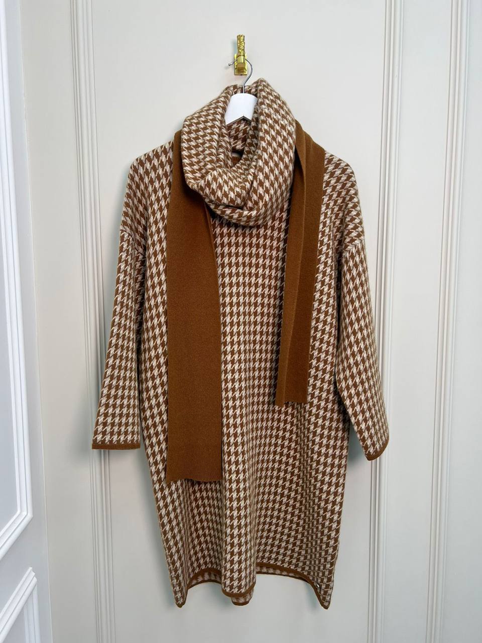 Платье Hermes LUX-76891 представляет собой стильное изделие в классическом стиле. Выполнено в коричневых тонах с принтом "гусиная лапка". Это платье, которое можно использовать как для повседневной носки, так и для создания элегантного образа.