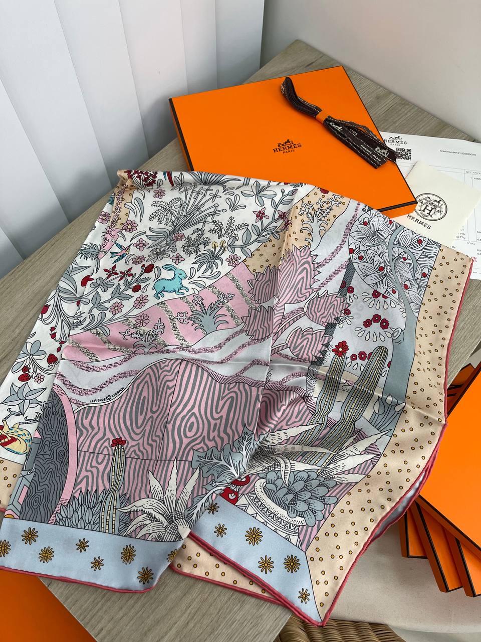 Этот платок Hermes LUX-64765 представляет собой яркое произведение искусства, сочетающее в себе изысканный дизайн и высокое качество. Яркие оттенки розового, голубого, серого и белого создают завораживающий пейзаж с экзотическими растениями и игривым зайцем. Аксессуар является воплощением элегантности и уникального стиля бренда Hermes.