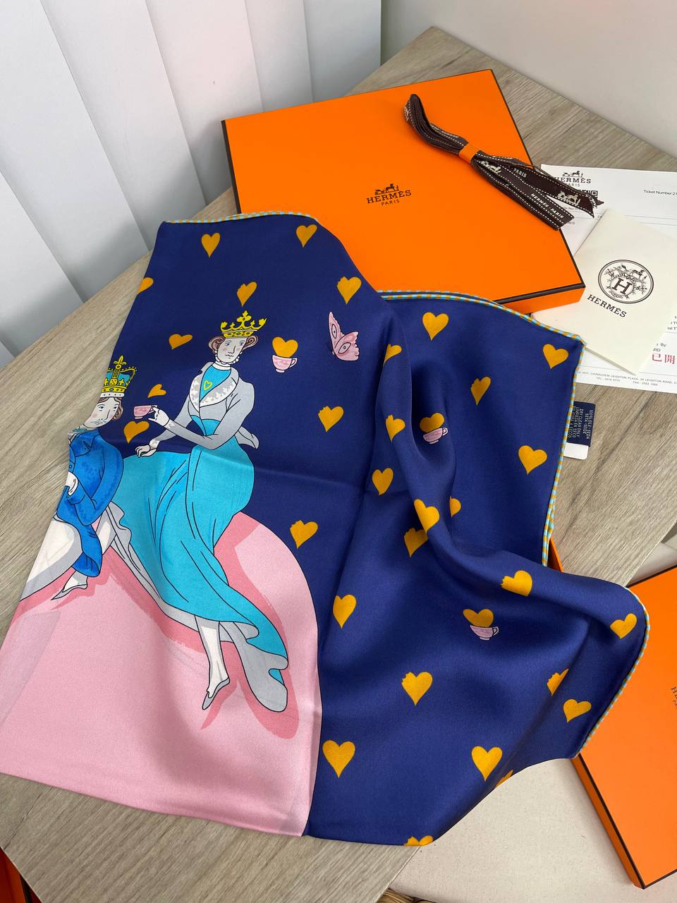 Элегантный шелковый платок Hermes LUX-64777 от бренда Hermes – это изысканный аксессуар, дополняющий любой образ. Его утонченный дизайн с изображением королевских особ и сердечек, выполненный в глубоком синем цвете, придает ему особый шарм. Этот платок идеально подходит для создания утонченных и запоминающихся стилей.