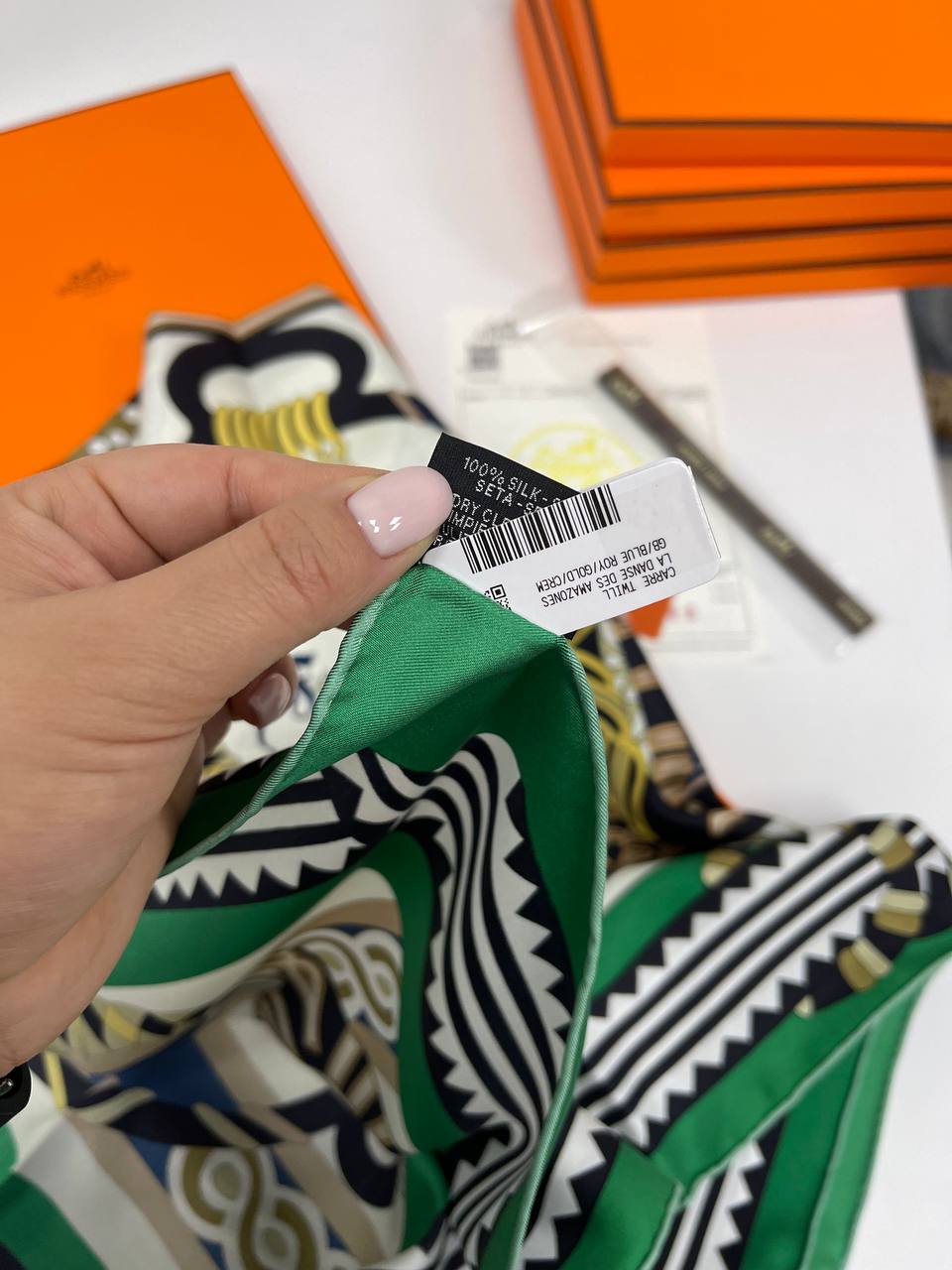 Платок Hermes LUX-83841 представляет собой изысканный аксессуар, сочетающий в себе элегантность и функциональность. Этот платок, выполненный в фирменном стиле Hermes, украшен сложным узором с изображением деталей конного снаряжения и надписей. Его цветовая палитра включает в себя белый, черный, зеленый и золотистый, создавая роскошный и запоминающийся образ.
