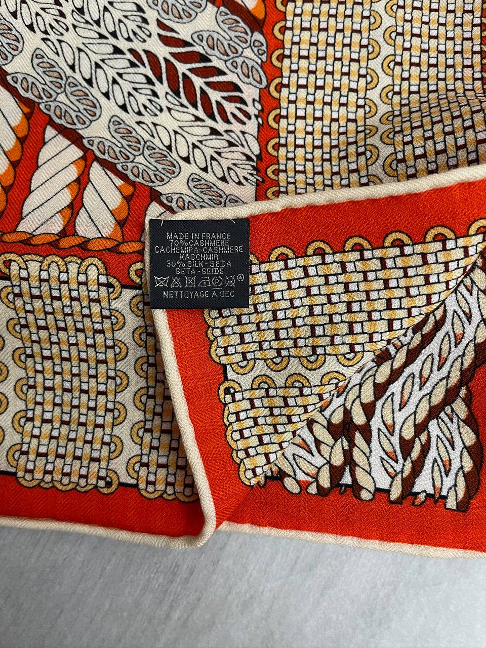 Платок Hermes LUX-99627 представляет собой элегантный аксессуар, который станет изысканным дополнением к любому образу. Платок выполнен в ярких оттенках оранжевого, белого и коричневого цветов с замысловатым узором. Этот платок — прекрасный выбор для создания стильного и утонченного образа.