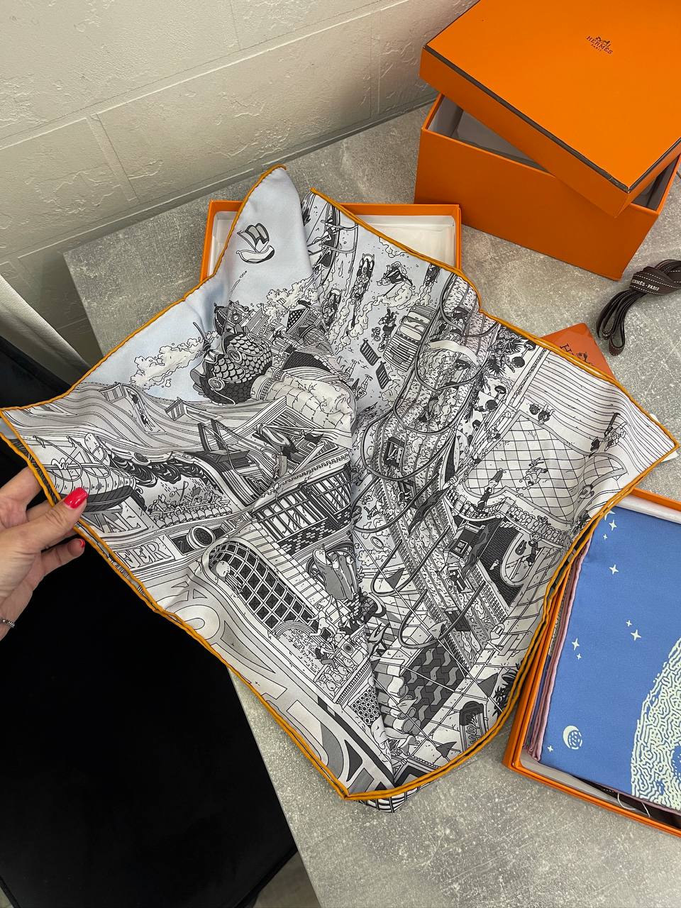 Платок Hermes LUX-109014 – это изысканный аксессуар, сочетающий в себе французский шик и утонченность. Платок выполнен в бело-серой гамме с яркой оранжевой окантовкой, украшен графическим рисунком, изображающим городскую архитектуру Парижа. Этот платок станет прекрасным дополнением к любому образу, добавляя нотку элегантности и стиля.