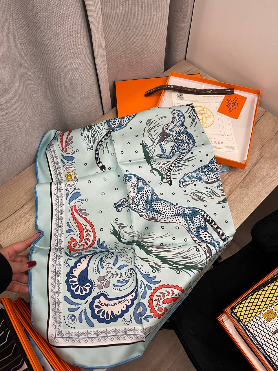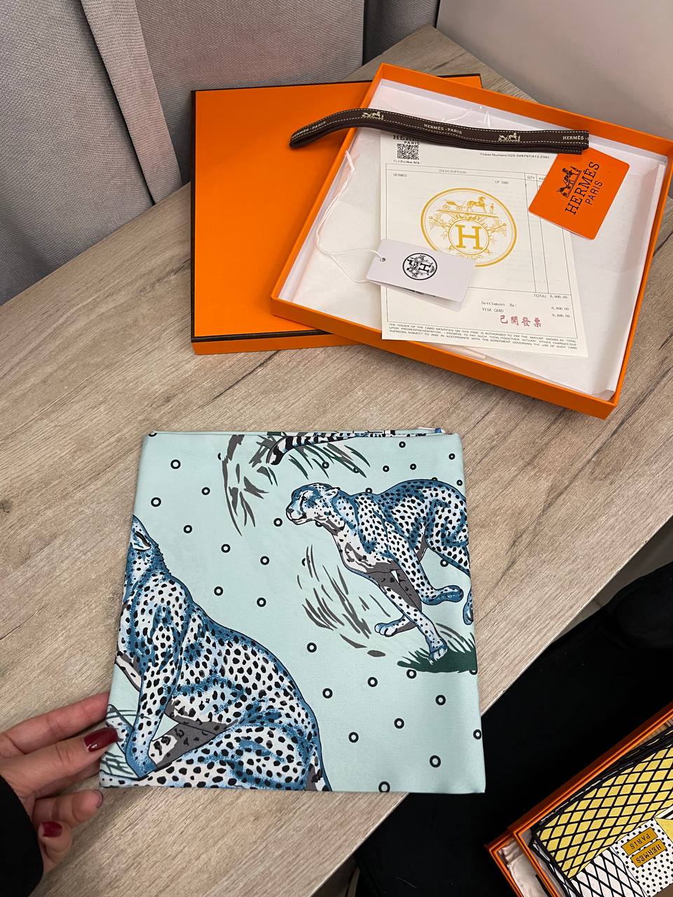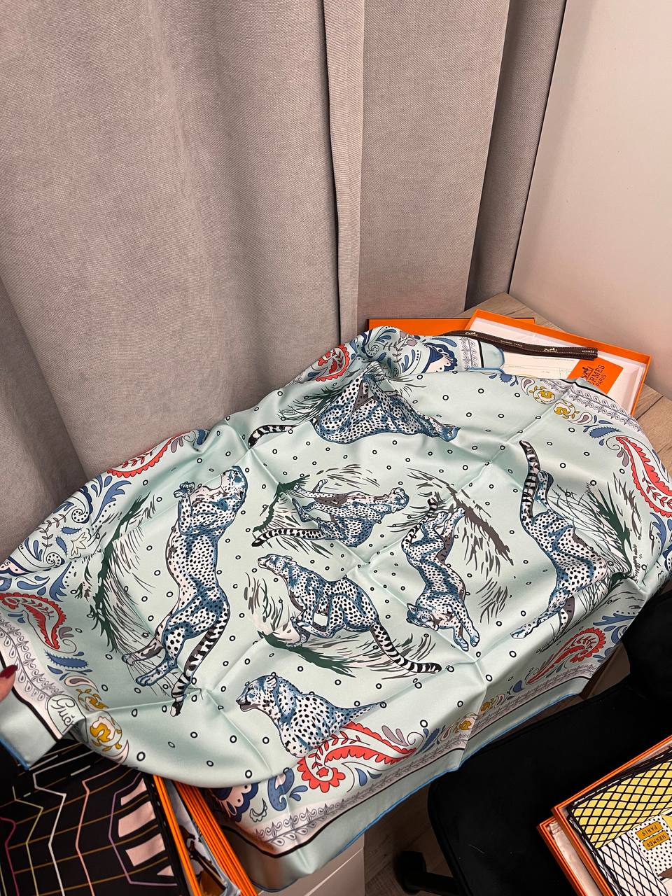 Платок Hermes LUX-114991 — это изысканный аксессуар, сочетающий в себе элегантность и функциональность. Платок выполнен в нежно-голубых тонах с изображением леопардов, что придает ему стильный и выразительный вид. Идеально подходит для создания утонченного образа, дополняя как повседневную, так и вечернюю одежду.