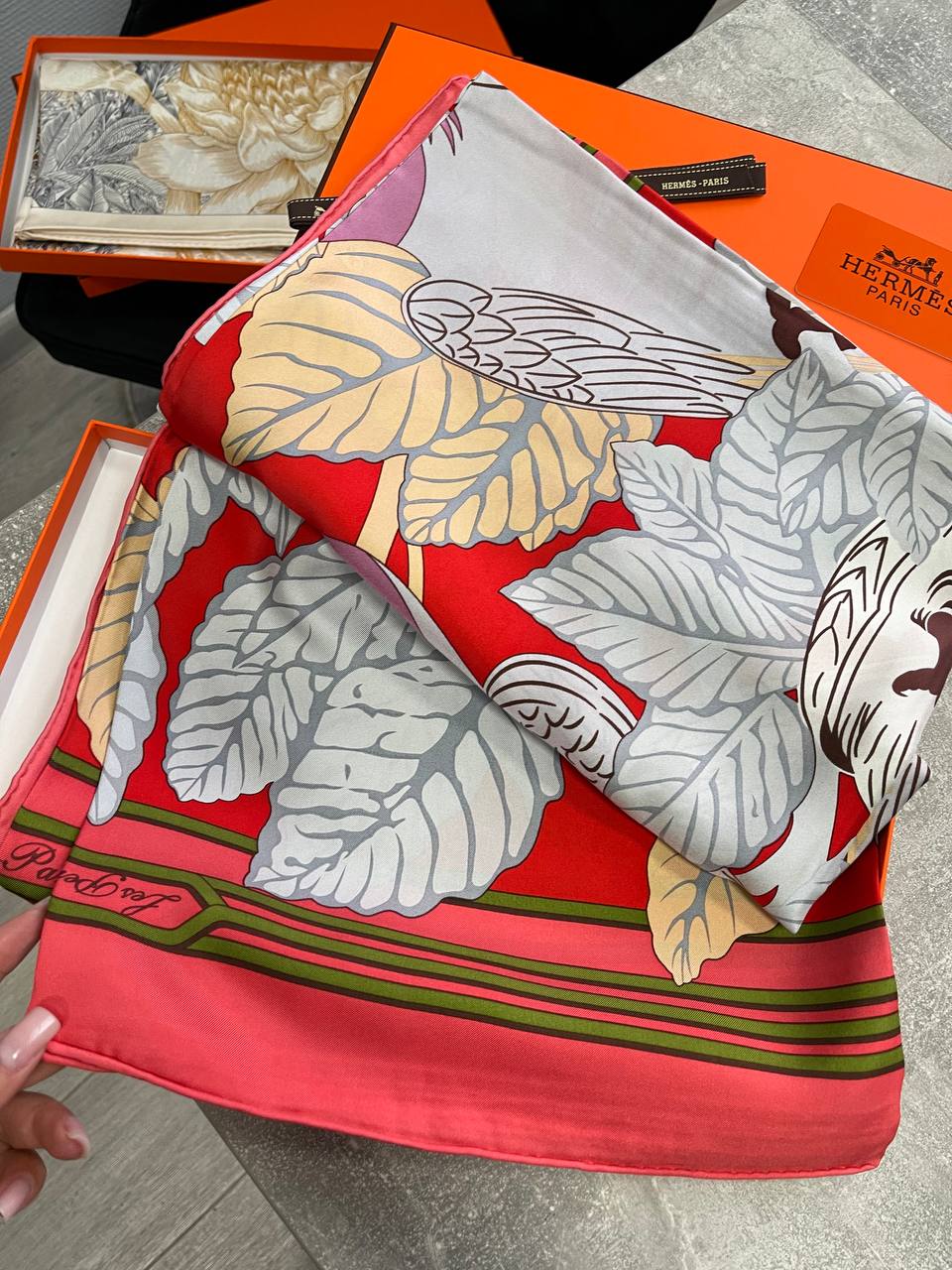 Платок Hermes LUX-116879 представляет собой изысканный аксессуар, выполненный в ярких оттенках. Платок украшен красочным рисунком с изображением птиц и растительных элементов, что придает ему элегантность и стиль. Он станет отличным дополнением к вашему образу, привнося нотку роскоши.