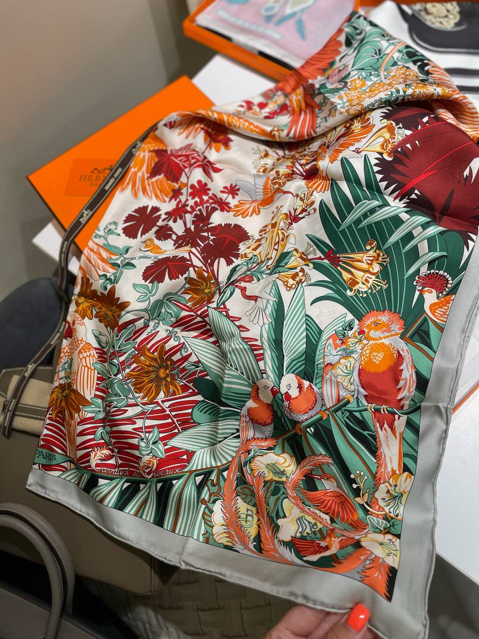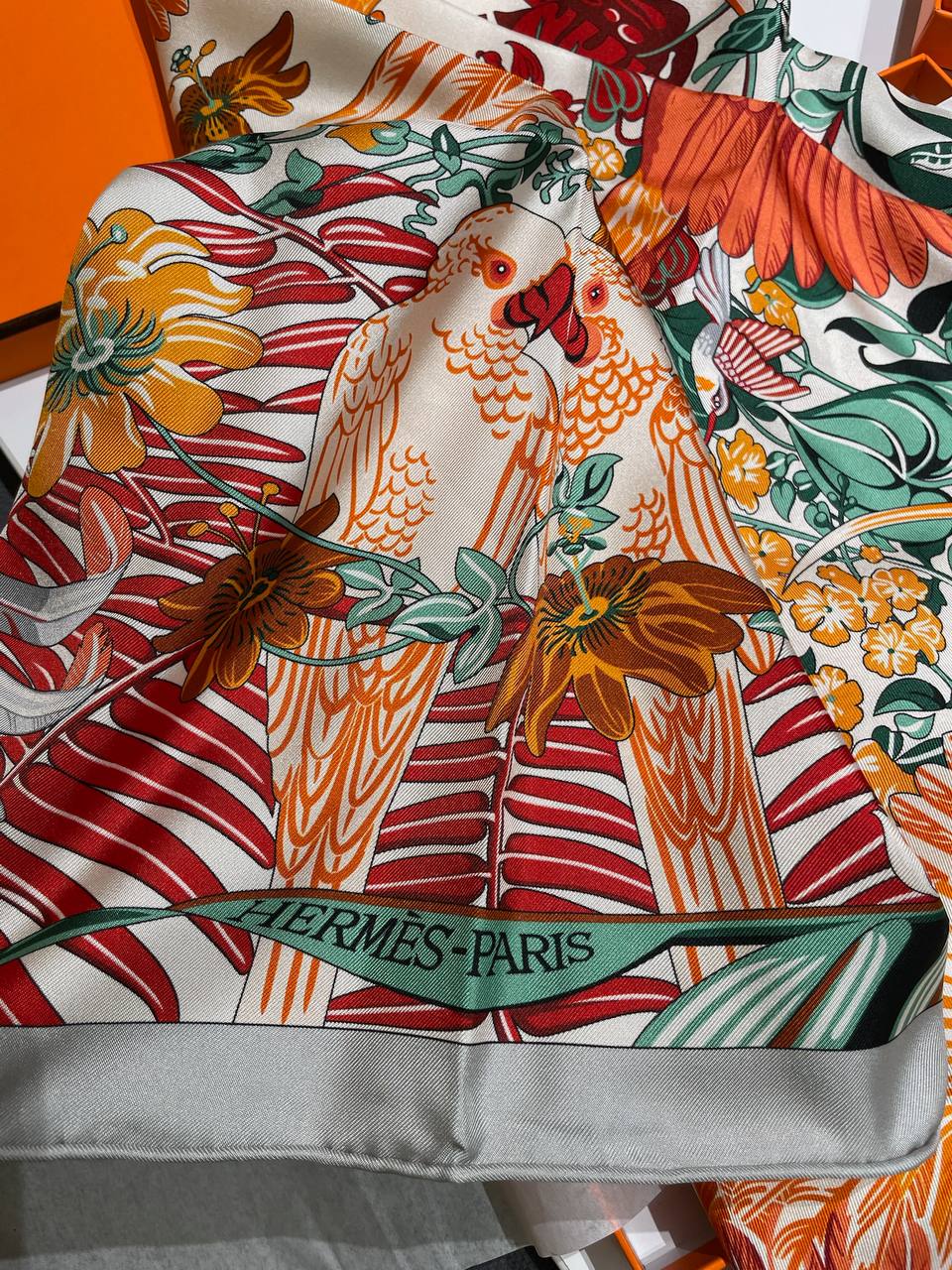 Цвет: Многоцветный с преобладанием белого, зеленого и оранжевого