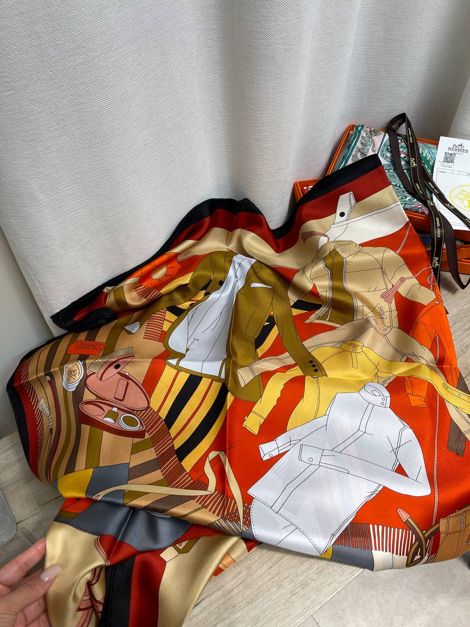 Платок Hermes LUX-132469 – это изысканный аксессуар, сочетающий в себе элегантность и утонченный стиль. Он станет прекрасным дополнением к любому образу, добавляя нотку роскоши.