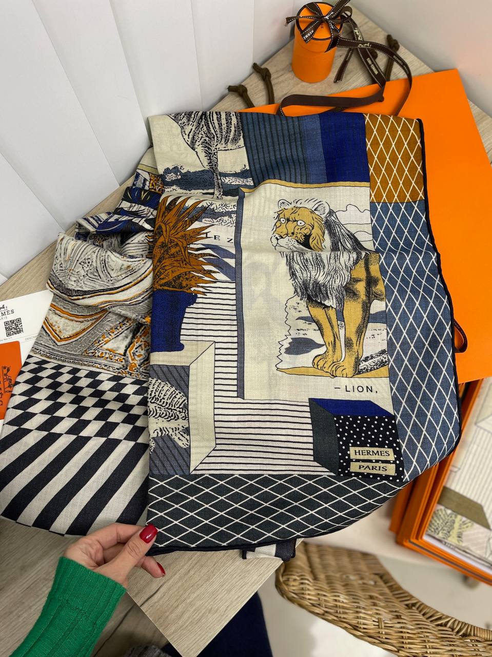 Платок Hermes LUX-80125 — это стильный аксессуар, который сочетает в себе элегантность и функциональность. Яркий дизайн платка с изображением льва добавляет ему индивидуальность. Его можно использовать как шейный платок, повязку на голову или аксессуар для сумки.