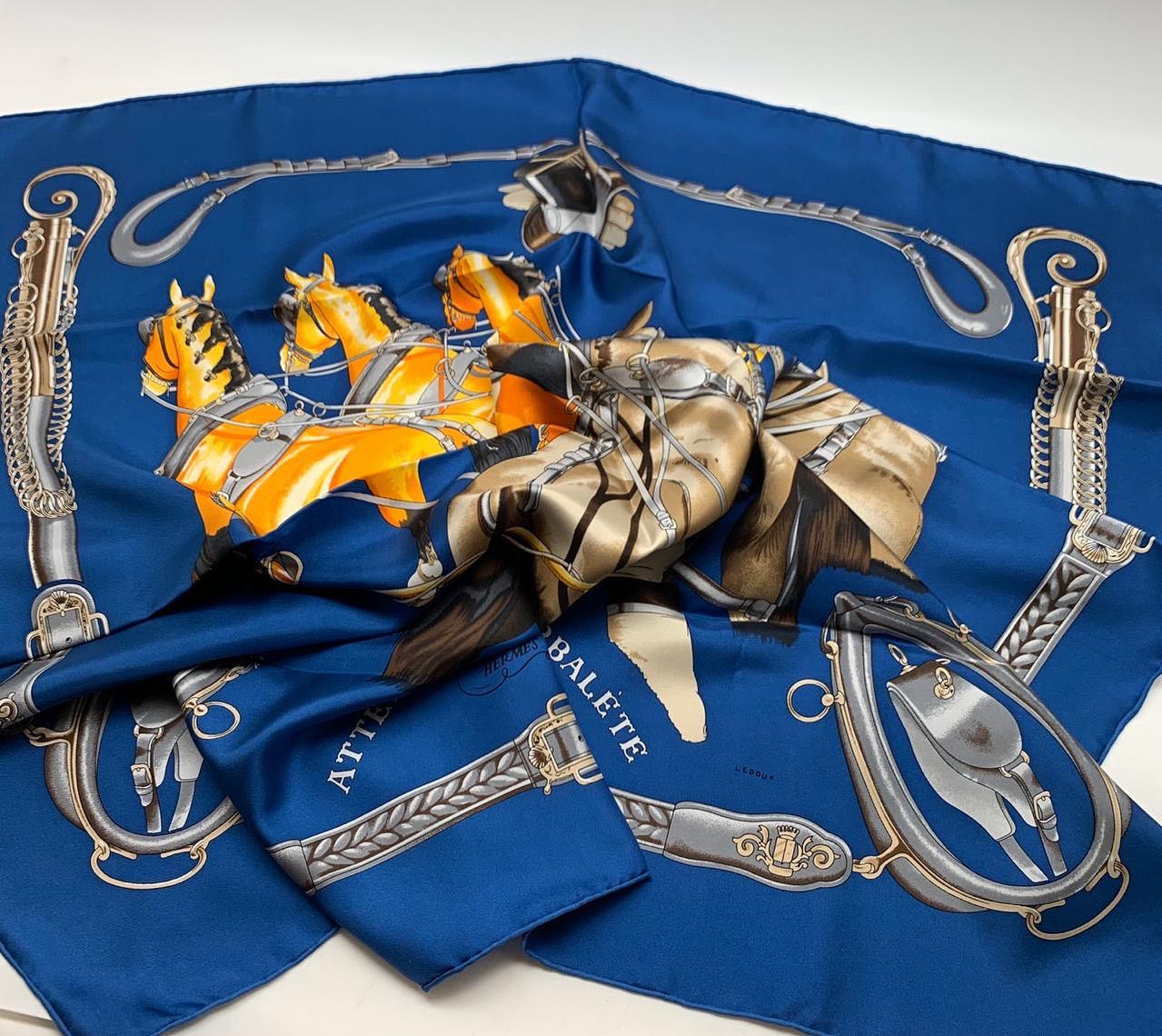Этот шелковый платок Hermes LUX-30188, представленный в насыщенном синем цвете, демонстрирует изысканный дизайн с изображением лошадей в упряжке и элементов конной амуниции. Яркие детали и премиальный материал придают ему роскошный вид, делая его идеальным аксессуаром для создания элегантных образов.