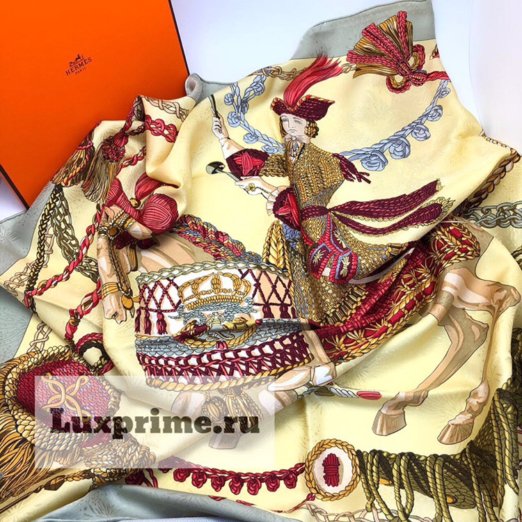 Платок Hermes АКС-776 представляет собой изысканный аксессуар, выполненный в стиле бренда Hermes, известного своим безупречным качеством и элегантностью. Этот платок, украшенный детальным принтом с изображением фигур в старинных костюмах, лошадей и геральдических элементов, станет ярким акцентом в любом образе. Аксессуар отлично подойдет как для повседневного стиля, так и для особых случаев, добавляя нотку роскоши и утонченности.