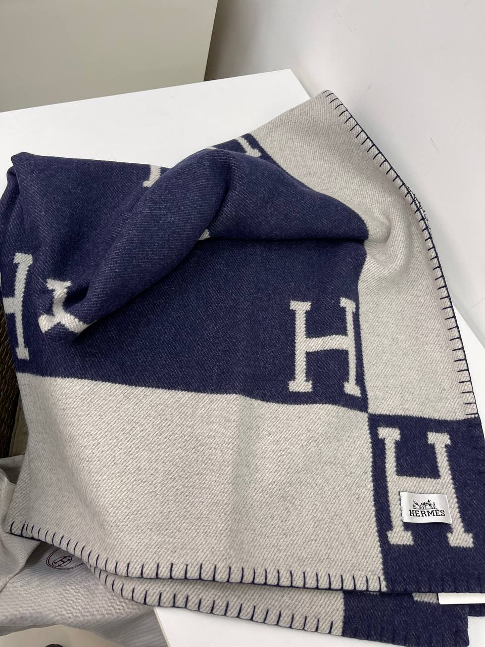 Плед Hermes LUX-82835 — это стильный аксессуар для дома, выполненный в классическом стиле. Сочетание темно-синих и светло-серых квадратов с крупными буквами "H" создает узнаваемый дизайн. Этот плед станет прекрасным дополнением к интерьеру, добавляя нотку роскоши и комфорта.