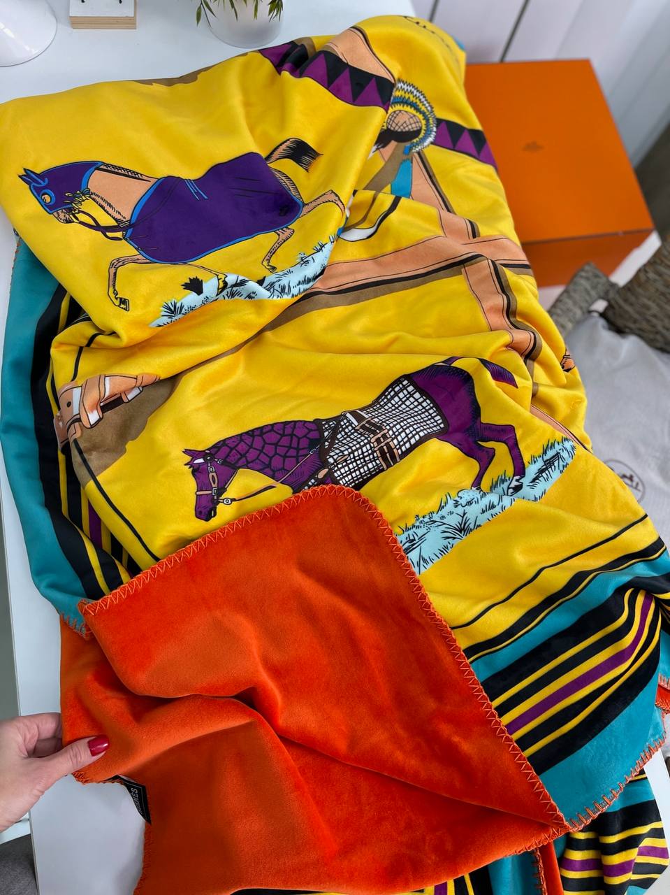 Плед Hermes LUX-80714 представляет собой роскошный аксессуар для дома, сочетающий в себе элегантность и комфорт. Плед выполнен в яркой цветовой гамме с изображением лошадей и других декоративных элементов, что делает его стильным акцентом в любом интерьере. Его мягкая текстура и привлекательный дизайн создают атмосферу уюта и тепла.