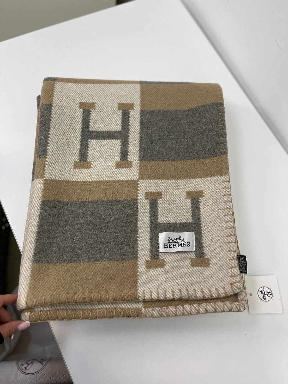 Плед Hermes LUX-82836 — это стильный аксессуар, который сочетает в себе элегантность и комфорт. Плед выполнен в сочетании бежевых и коричневых оттенков с контрастным узором в клетку и фирменным логотипом бренда. Идеально подходит для использования дома, на природе или в качестве стильного дополнения к интерьеру.