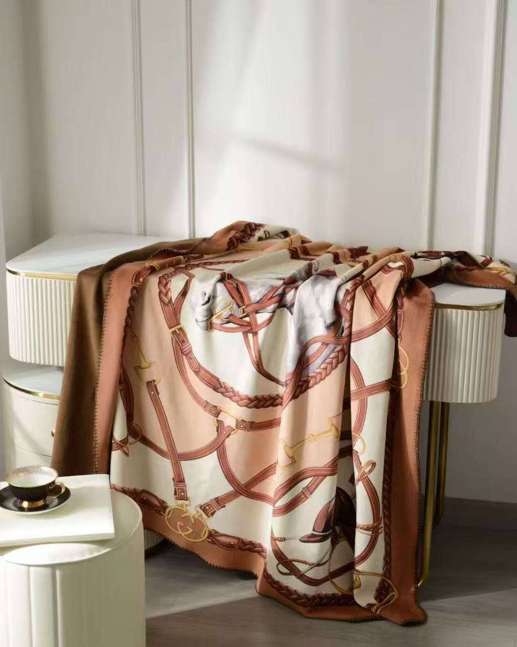 Плед Hermes LUX-118071 - это изысканный аксессуар, сочетающий в себе элегантность и комфорт. Он выполнен в мягких пастельных тонах с изысканным принтом, который добавляет изюминку в любой интерьер. Плед идеально подходит для создания уютной атмосферы в доме или в качестве стильного элемента декора.