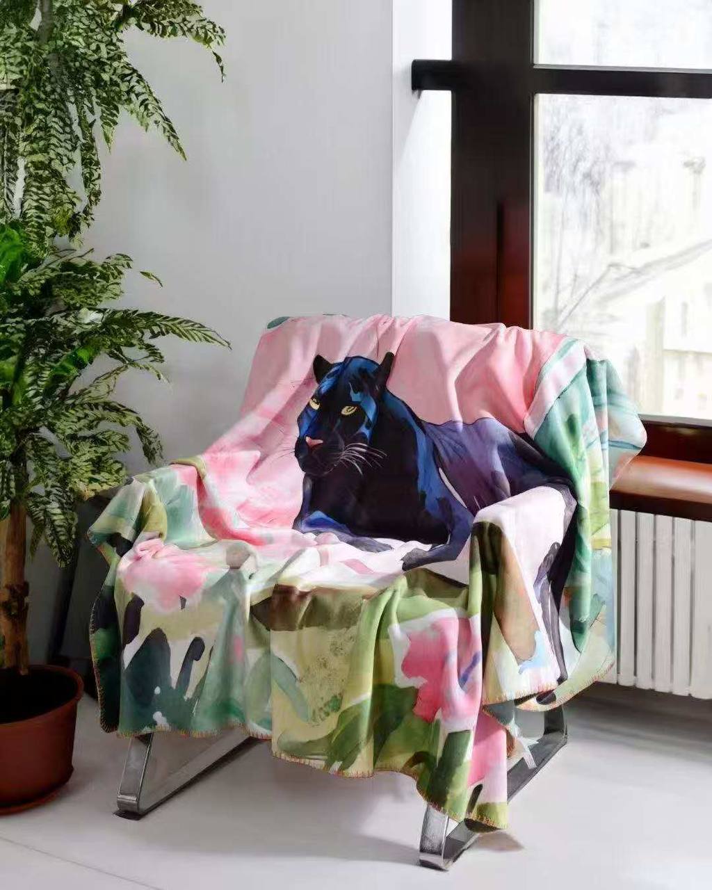 Плед Hermes LUX-118077 — это стильный аксессуар, который добавит уют и элегантность в ваш интерьер. Плед выполнен в пастельных тонах с изображением пантеры, что придает ему изысканный вид. Идеально подходит для использования в качестве декоративного элемента или теплого укрытия.