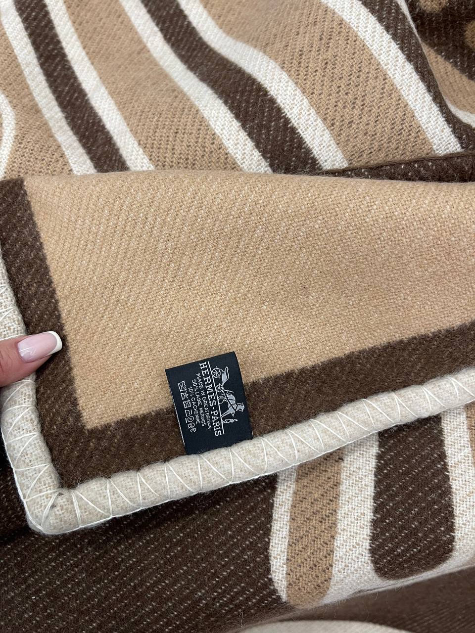 Плед Hermes LUX-101435 - это роскошный аксессуар для дома, выполненный в фирменном стиле Hermes. Плед выполнен в теплых коричневых тонах с геометрическим узором, который придает ему элегантность и изысканность. Он идеально подходит для использования в качестве пледа на диване или кровати, а также может служить стильным элементом декора интерьера.