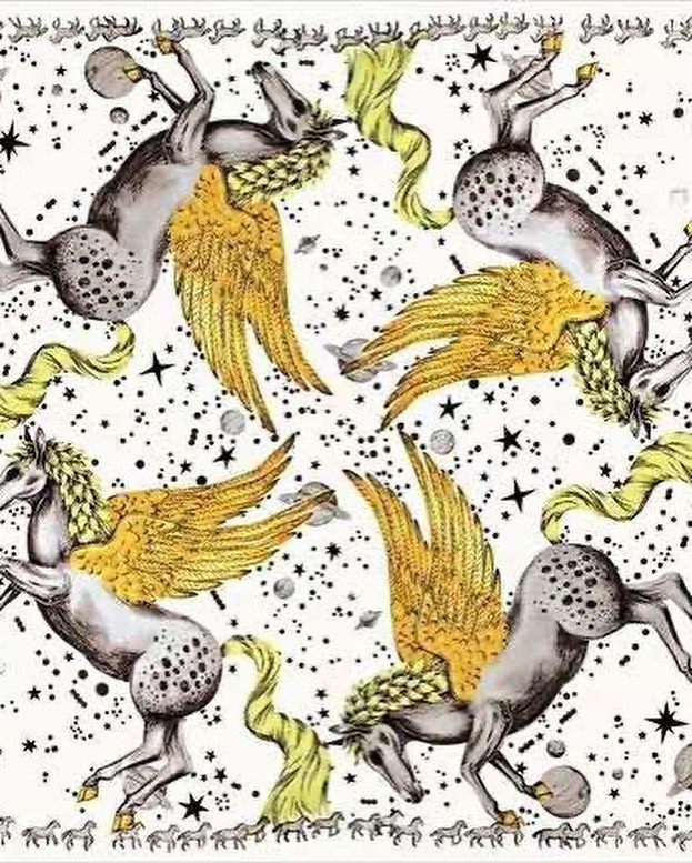 Плед Hermes LUX-36284 — это роскошный аксессуар, выполненный в эксклюзивном стиле, который добавляет изысканности любому интерьеру. Уникальный дизайн с изображением пегасов и космических мотивов создает атмосферу волшебства и мечтательности, делая его центральным элементом декора.