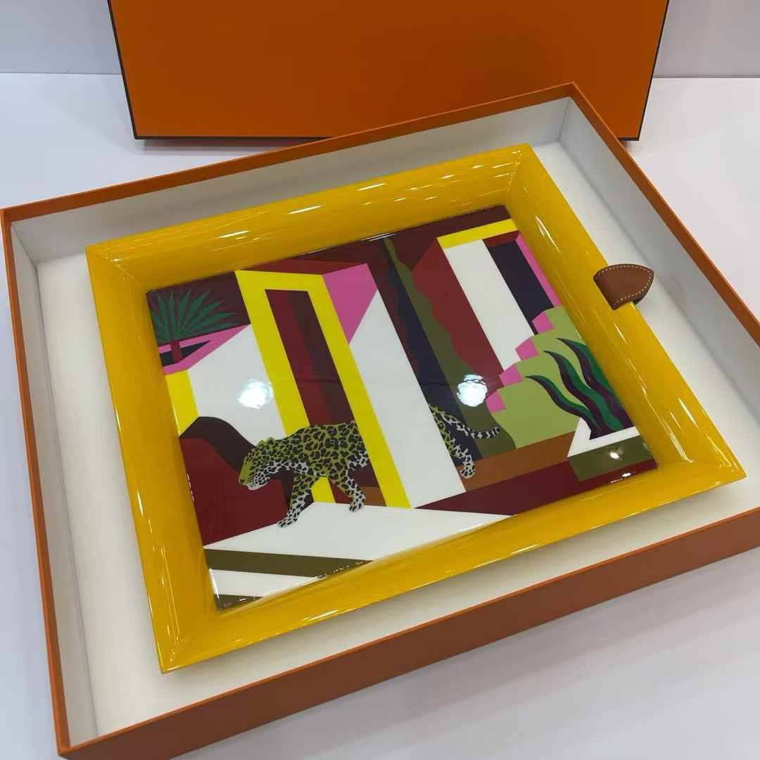 Поднос Hermes LUX-118057 — это изысканный предмет интерьера, сочетающий в себе роскошь и функциональность. Яркий желтый цвет рамки подчеркивает оригинальный принт на подносе, который добавляет ему уникальности. Этот поднос может служить как декоративным элементом, так и практичным аксессуаром для сервировки.