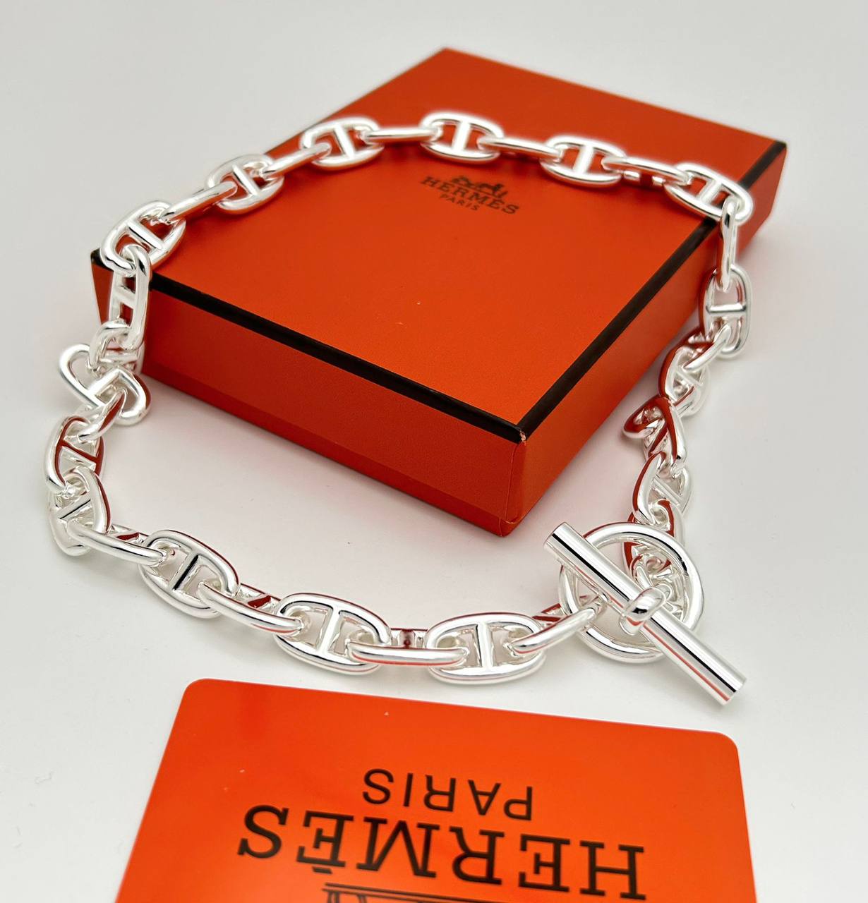 Подвеска Hermes LUX-111565 представляет собой стильный аксессуар в виде серебряной цепочки. Она выполнена в узнаваемом дизайне бренда, отражающем роскошь и элегантность. Цепочка-подвеска прекрасно подойдет для добавления изысканности в любой образ.