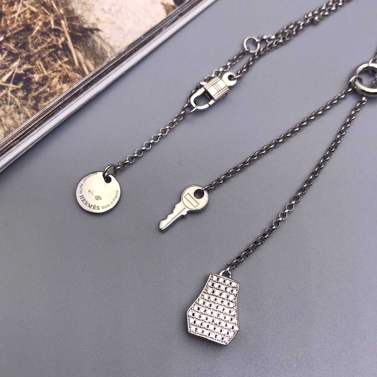 Подвеска Hermes LUX-83633 представляет собой изысканное украшение в серебристом оттенке, выполненное в минималистичном стиле. Подвеска состоит из цепочки, дополненной элегантными деталями, такими как ключ и фигурная подвеска. Этот аксессуар станет прекрасным дополнением к любому образу.
